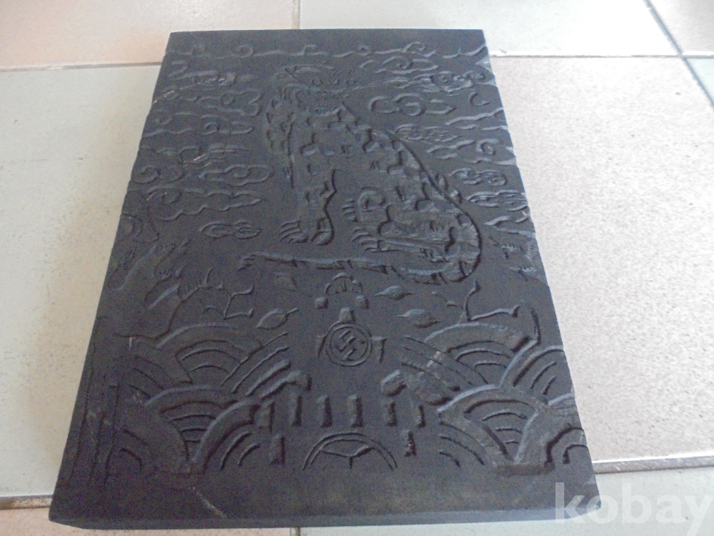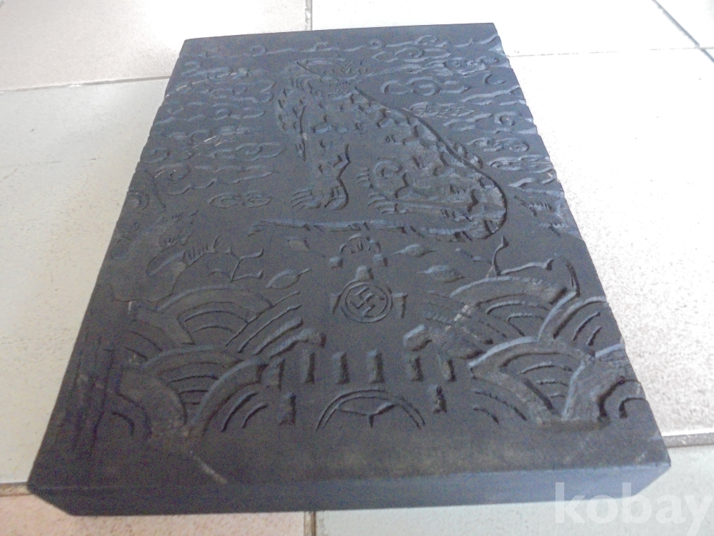 인기품인 까치호랑이을 음양각으로 섬세하게 파내여 그림을찍어내던 판으로 만든지 아주오래된것같이않는 조각이 잘파진 까치호랑이 나무책판