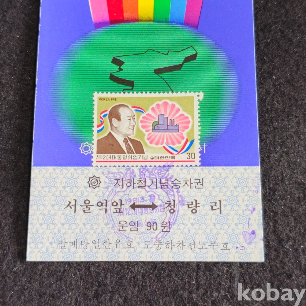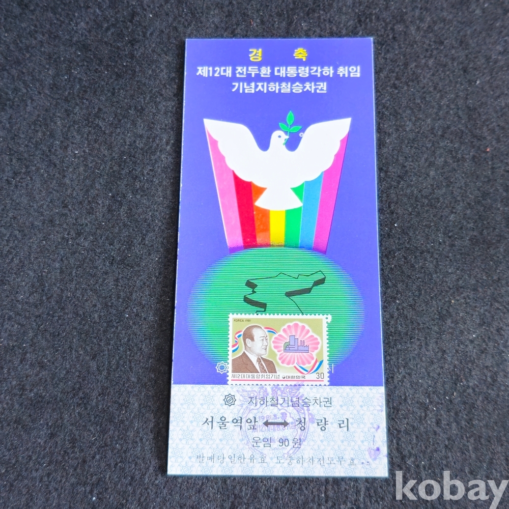 (((철도자료/지하철자료))) 1981년 경축 제12대 전두환 대통령각하 취임 기념 승차권 (서울특별시 지하철공사)(제12대 대통령취임기념 기념인 소인) (미사용)