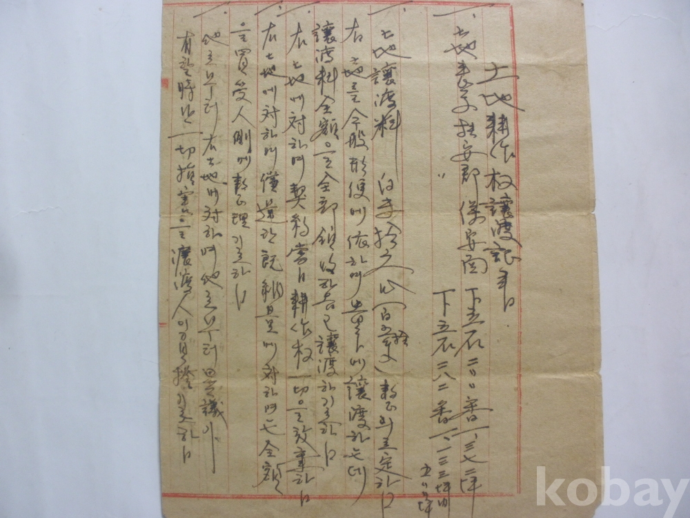 토지 경작권 양도증 (1957년, 부안군 보안면 하입석리)