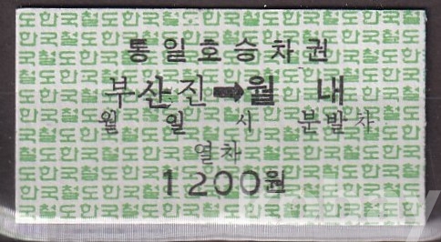 - 미사용 통일호 승차권 " 부산진 ▶ 월내 " 1200원