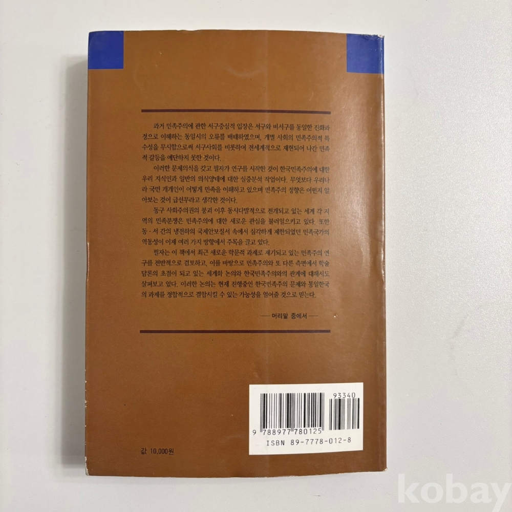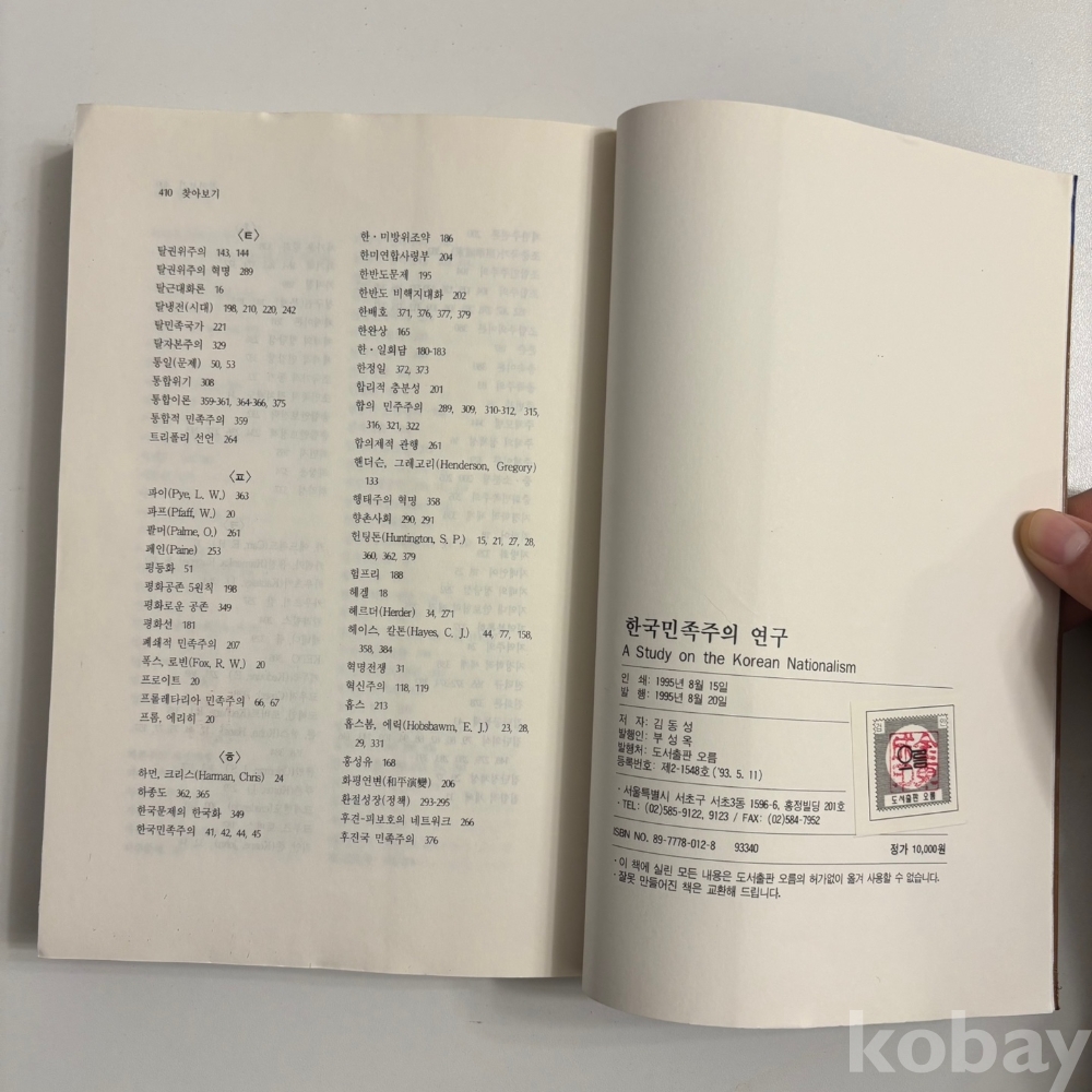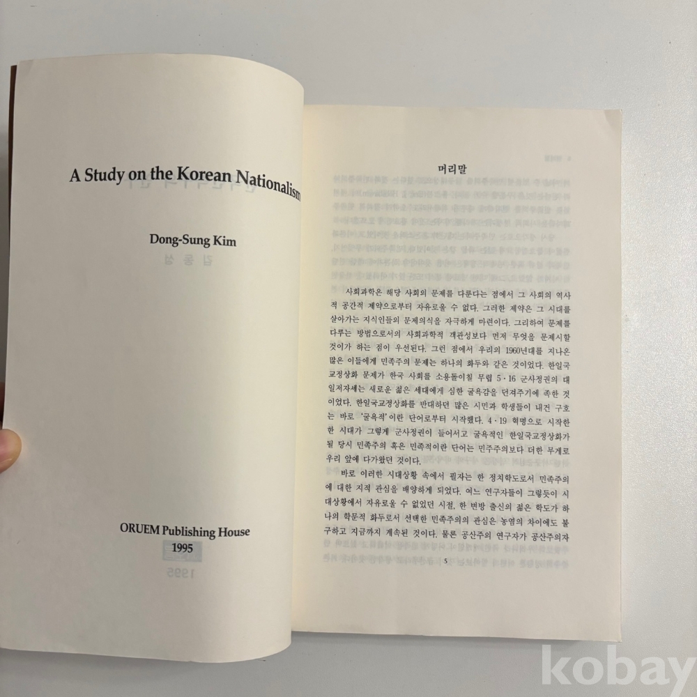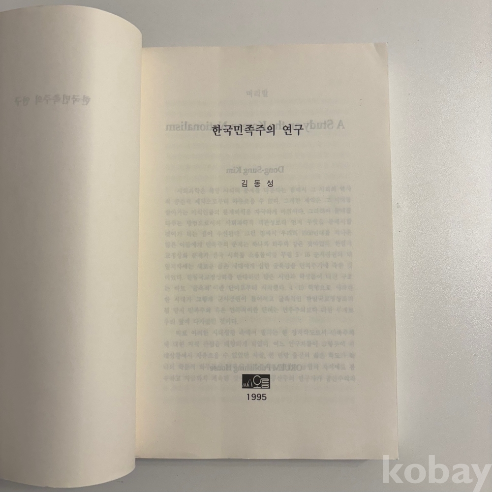 [한국현대사, 민족주의 담론] 김동성, <한국 민족주의 연구>, 오름, 1995, p. 410, 상태 중급(사진참조)