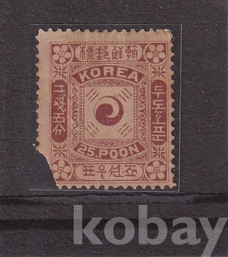 - 희귀 - 미사용 1896년 구한국 태극보통 25푼 / 두돈오푼 태극기 보통우표