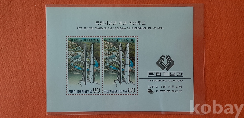독립기념관 개관 기념 시트는 두 장 모두 뒷면 상태가 좋지 못합니다.(사진 참조)