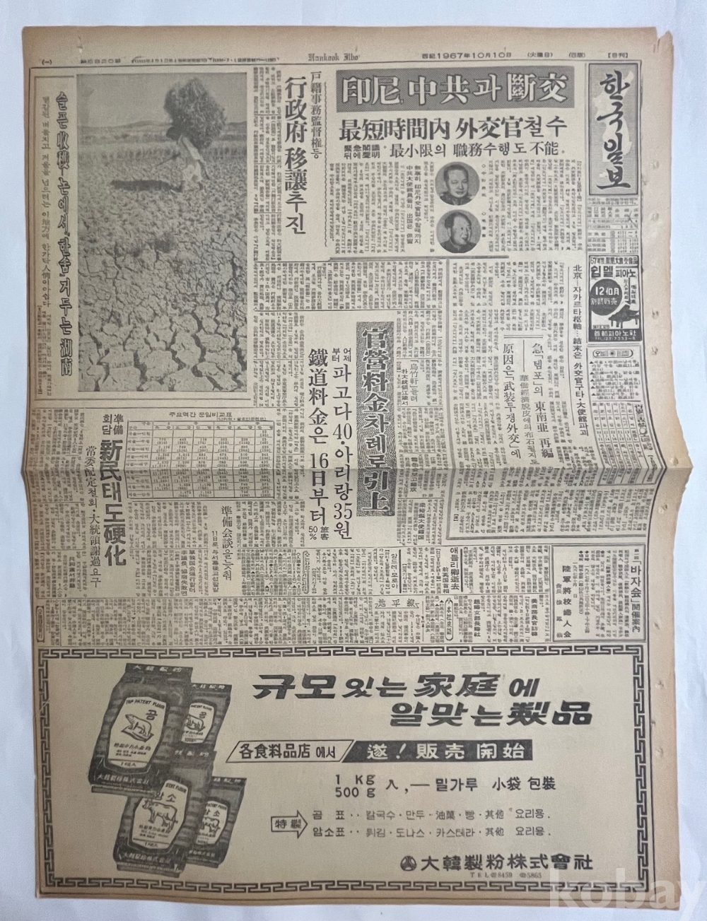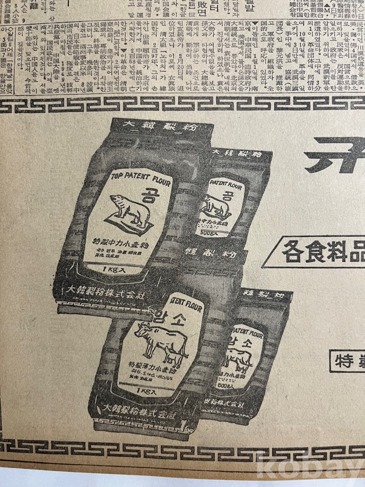 곰표 밀가루 광고가 실린 한국일보 낱장입니다.