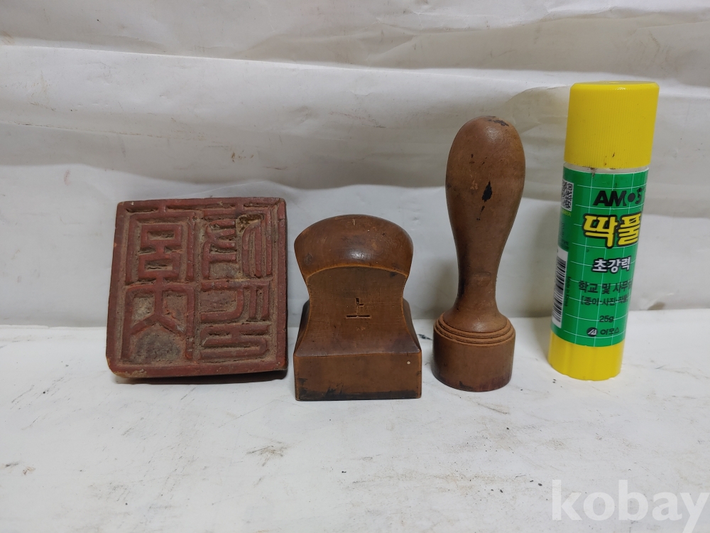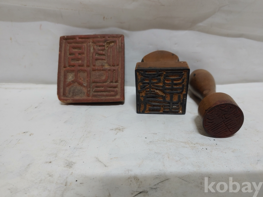 네모 모양의 나무 목도장은 조선시대의 연대이나 나머지 2개는 연대가 조금 떨어지는 것이오니 참고로 하시고 신중한 입찰을 부탁 드립니다