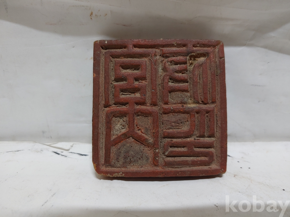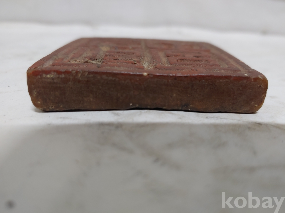 네모 모양의 나무 목도장의 모서리에 마모현상이 있으나 땟물과 상태가 좋으며