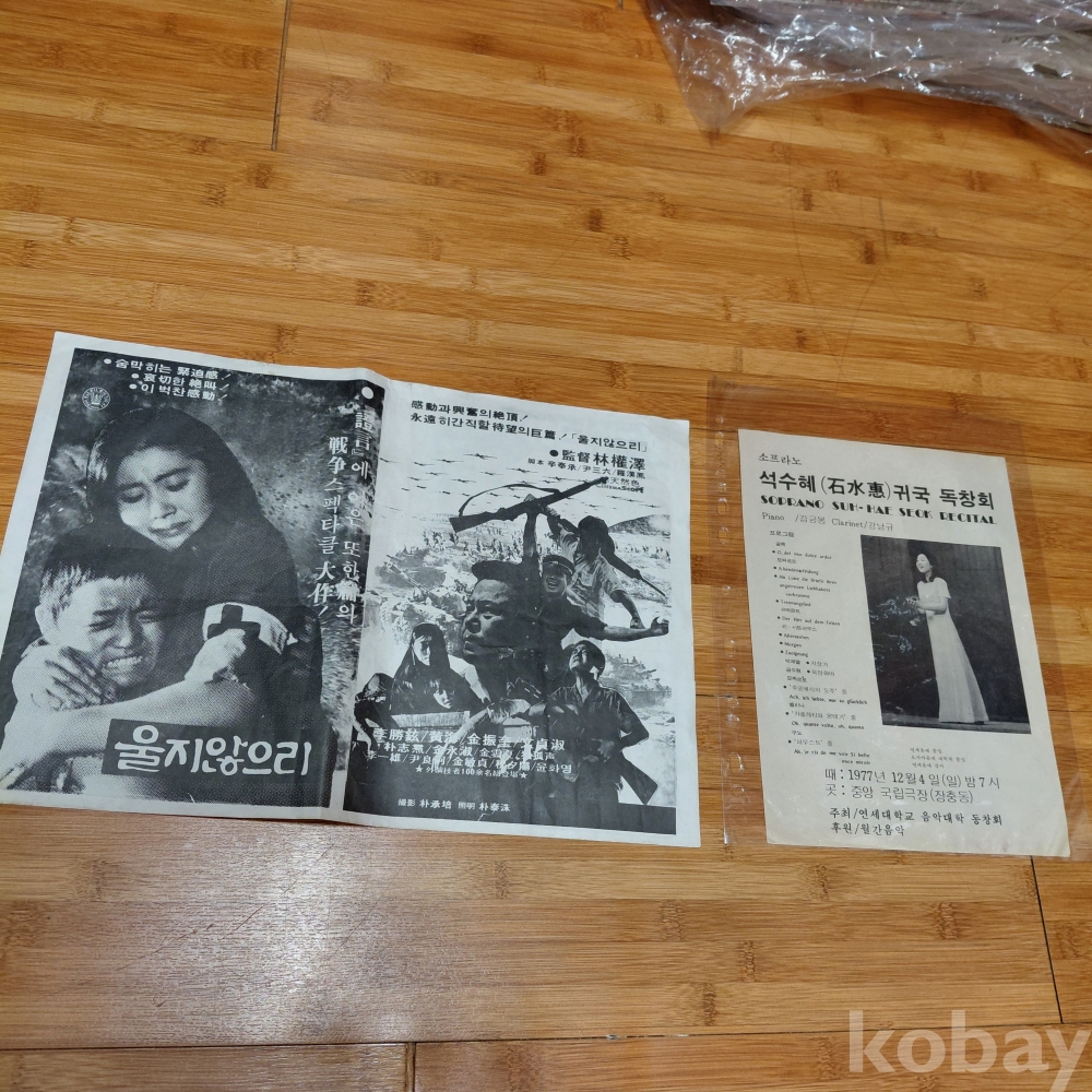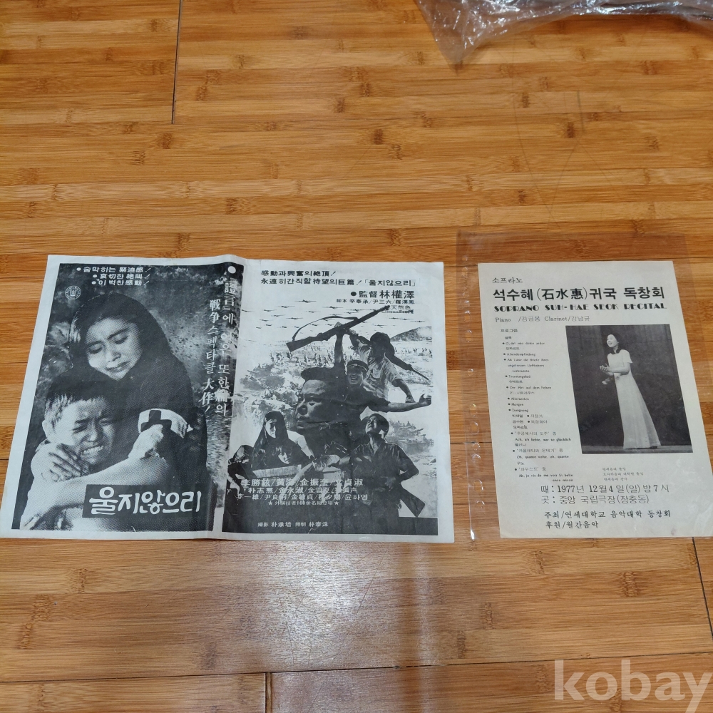 70년대 임권택 감독 울지않으리 보스터 ㆍ 77년중앙국립극장 석수혜 귀국독창회 팜플렛 두점일괄 올려드립니다