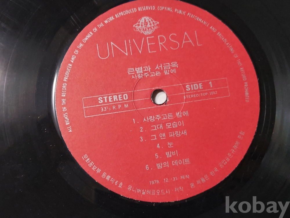| 자켓상태 | EX : 약간의 마모, 모서리 찢김 존재 | 음반상태 | EX : 재생에 영향 없는 가벼운 기스 존재 | 발매정보 | 알수없음 | 가사지여부 | 무 |
