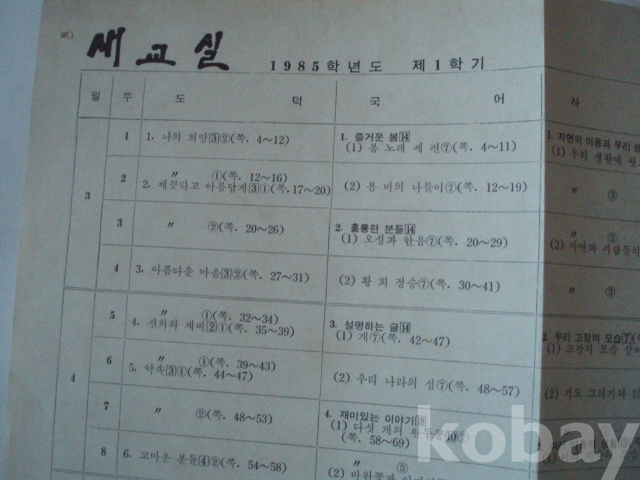 새교육 - 교육과정 진도표 (전국 표준, 1985년도 제1학기)