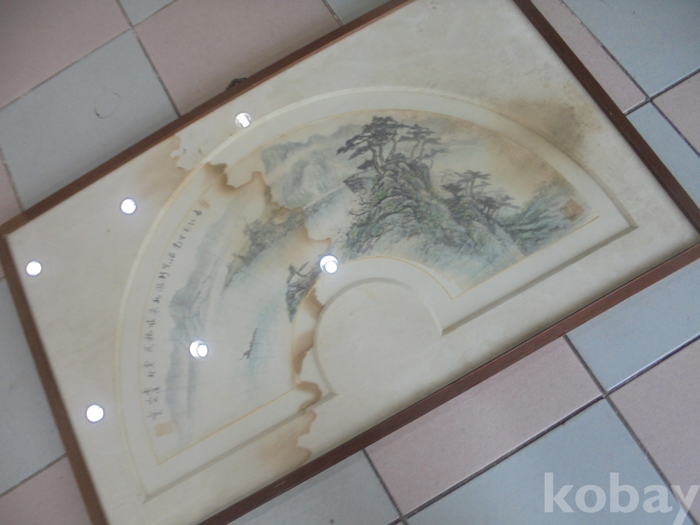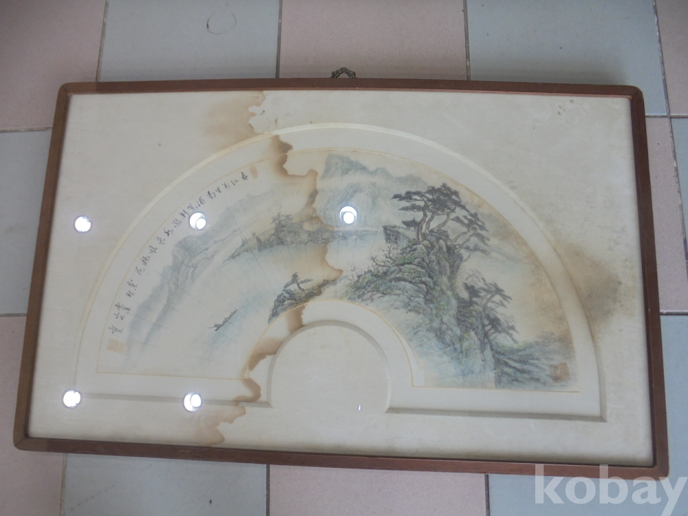 영적으로 너무잘그린 원근처리가잘된 산수풍경화 부채그림액자 액자크기 가로세로 90 x 56 cm 외사진참조