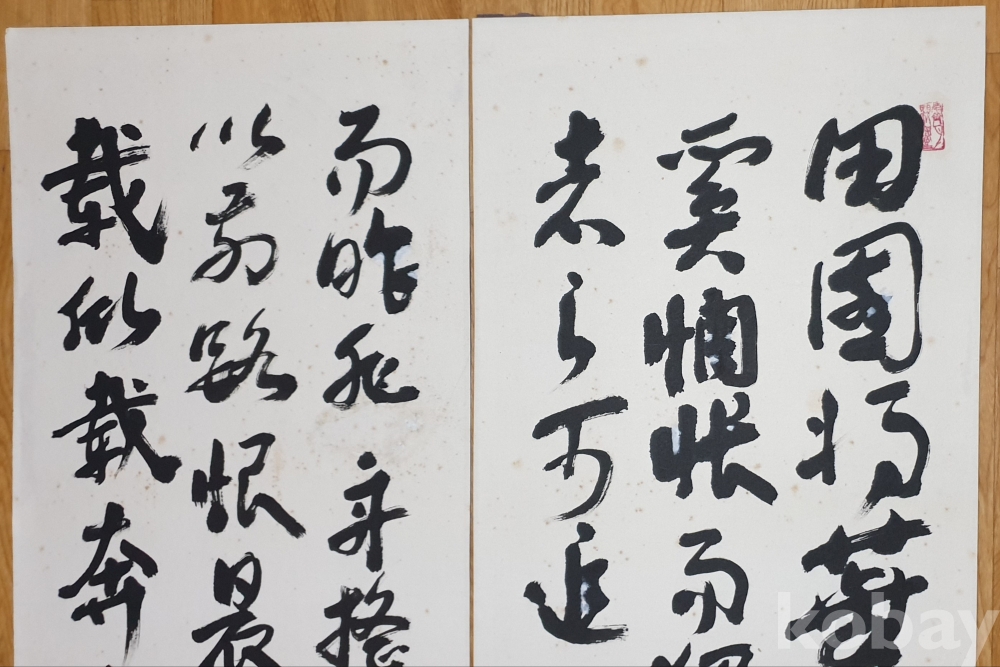 2. 병풍 제거/ 세월의 흔적과 마지막 장 상처 있으나 표구 시 보완되어 짐.