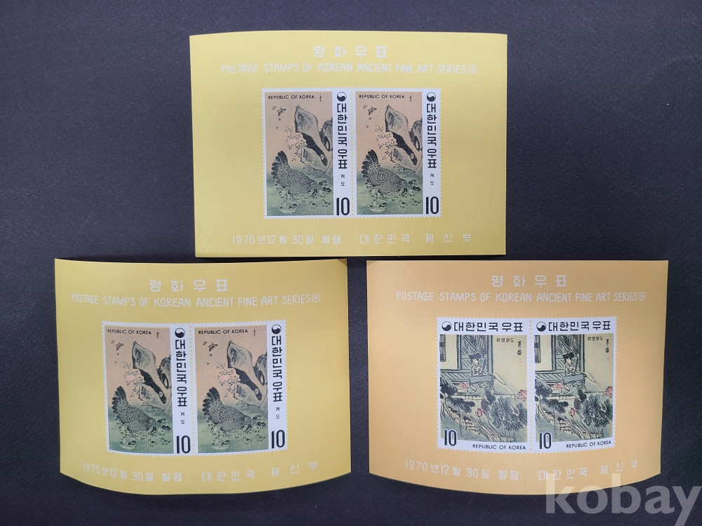 **** 1차명화시리즈 제3집 s/s무공 3매 (후면 얼룩흔적)