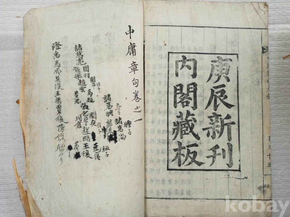 경진신간내각장판(庚辰新刊內閣藏板)의 간행기가 있는 중용 1책 單입니다.