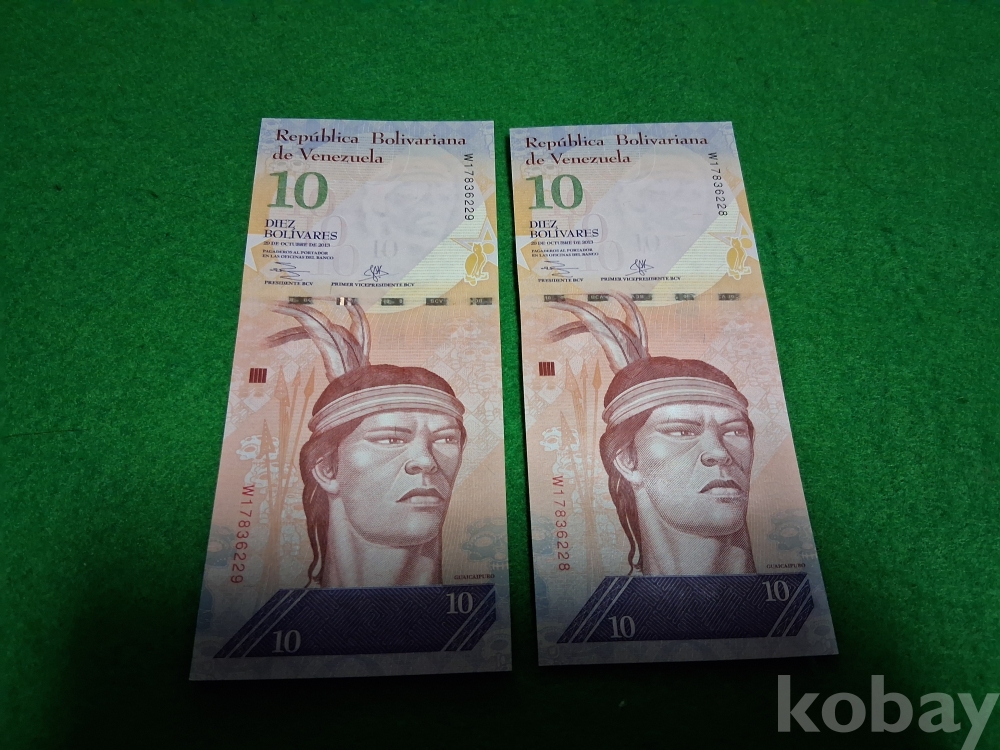 (외국지폐) 베네수엘라 연번호 지폐2매-미사용