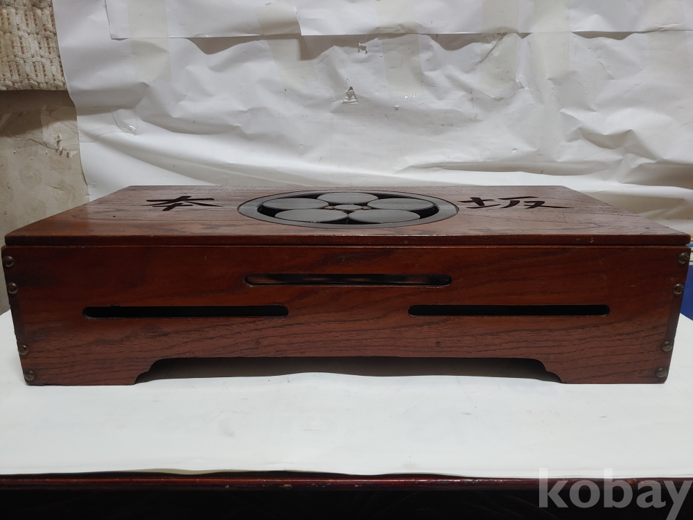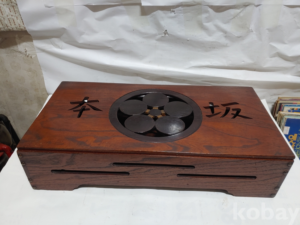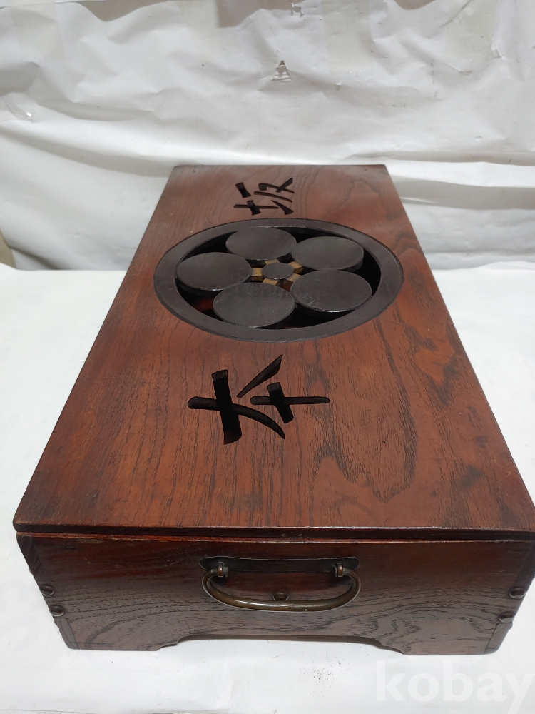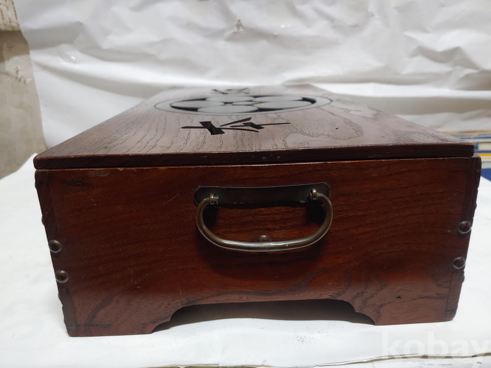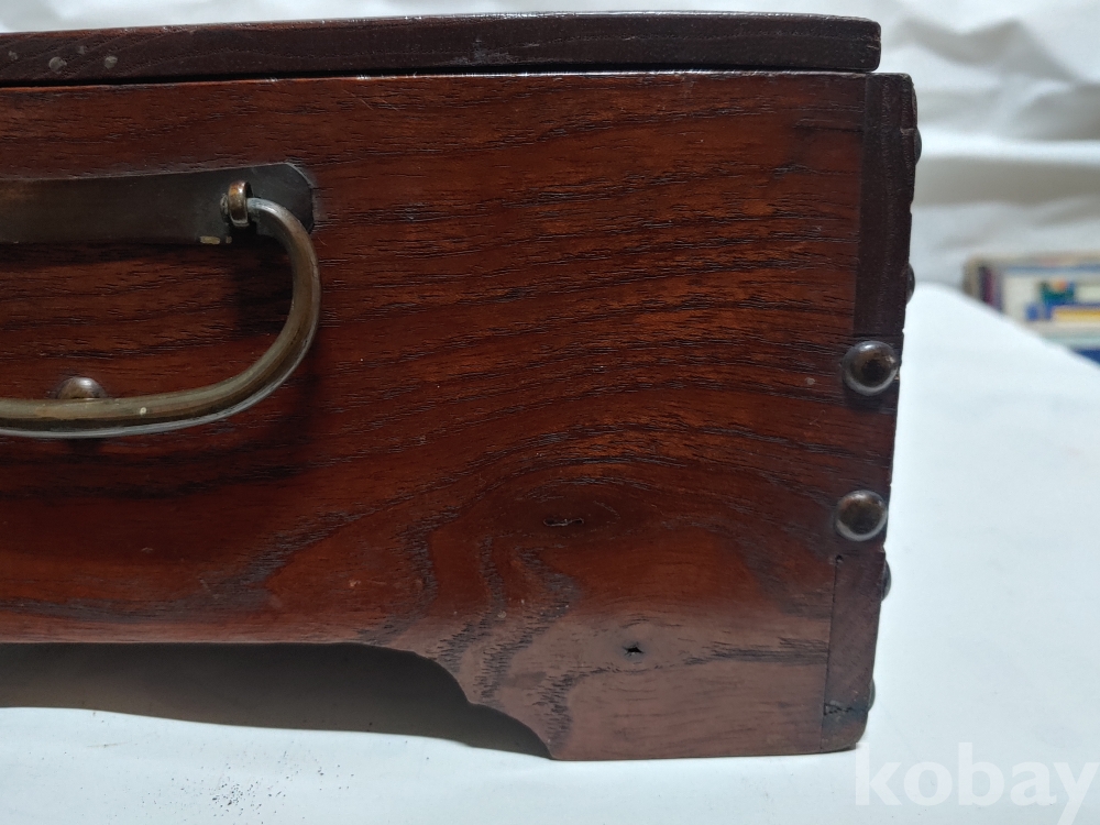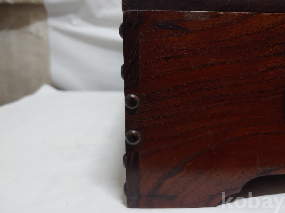 ""놋쇠 뽕장석이 있는 괴목나무 일본 다도상 (다기 보관함 다도상)""