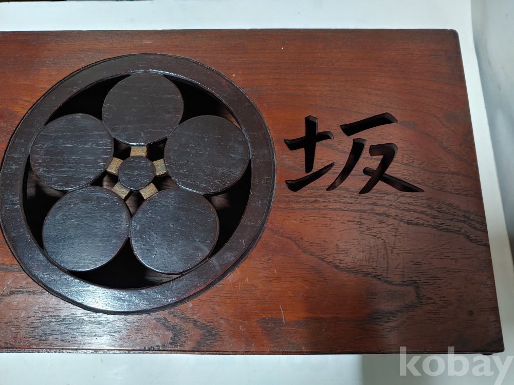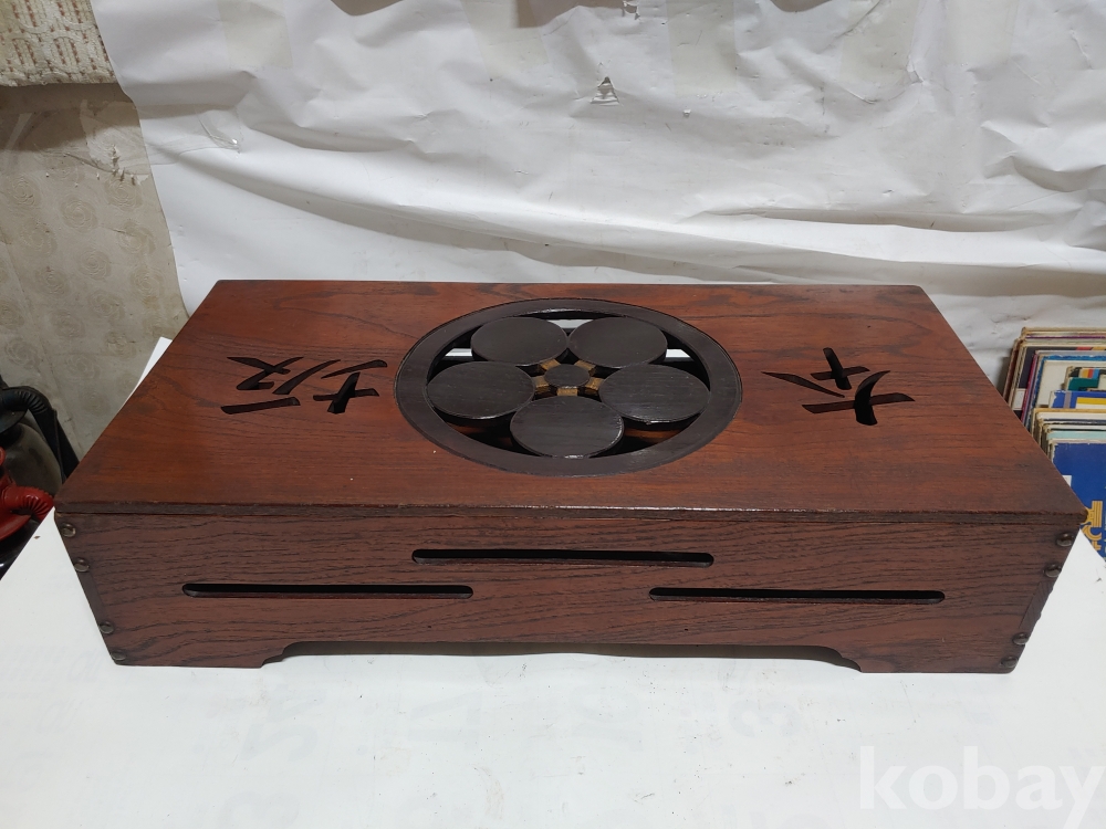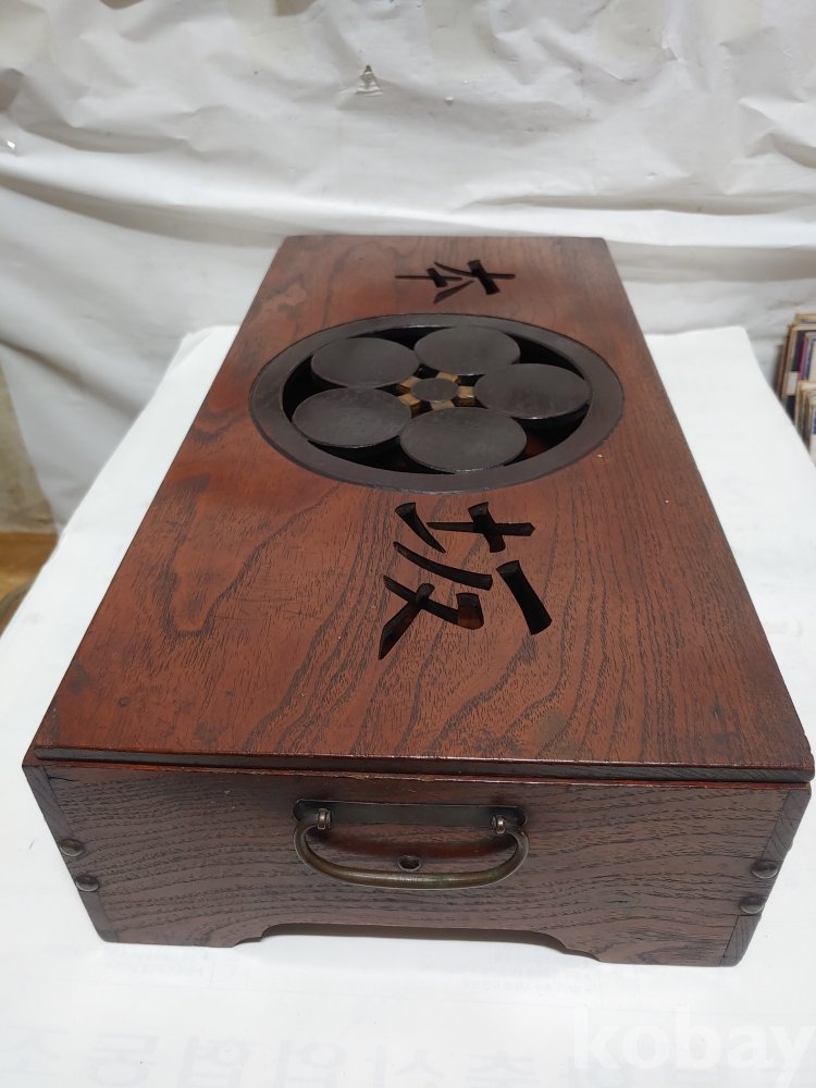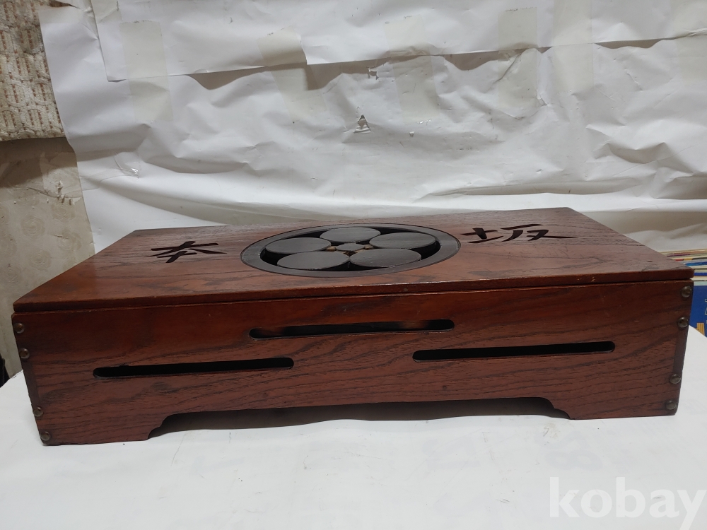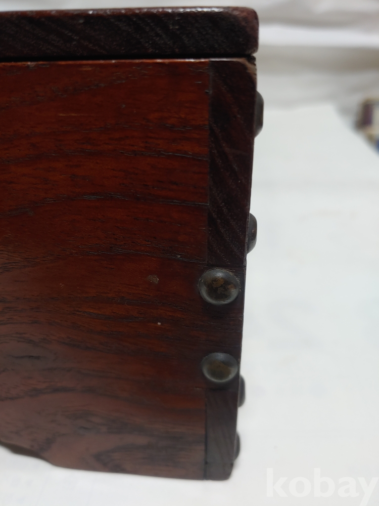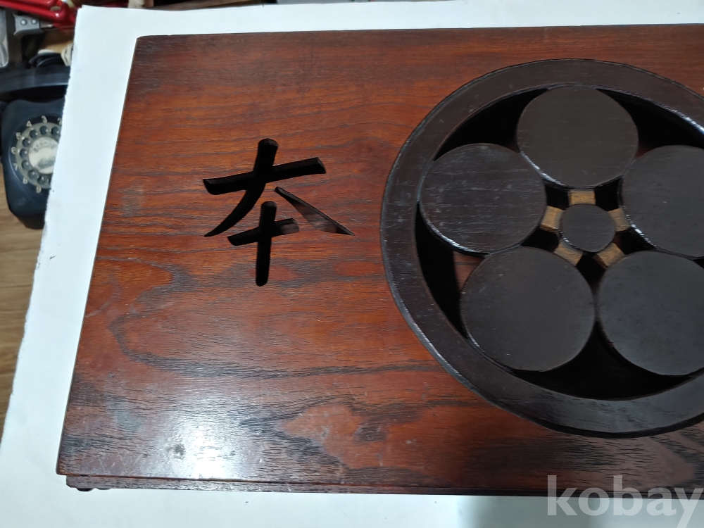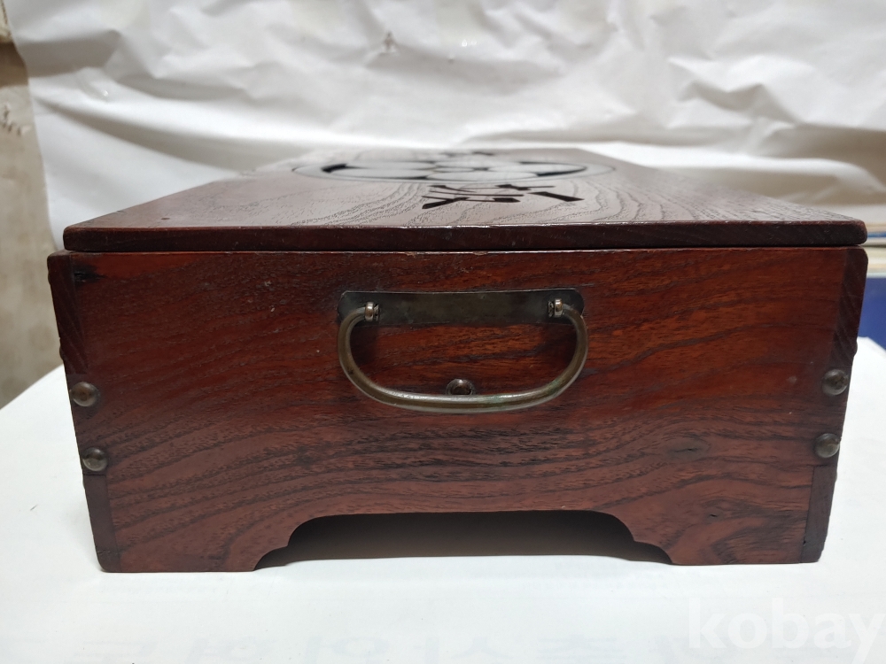 ""놋쇠 뽕장석이 있는 괴목나무 일본 다도상 (다기 보관함 다도상)""