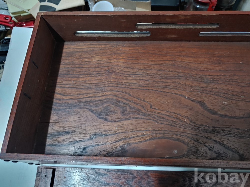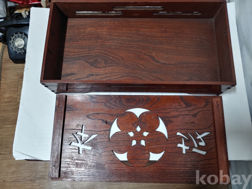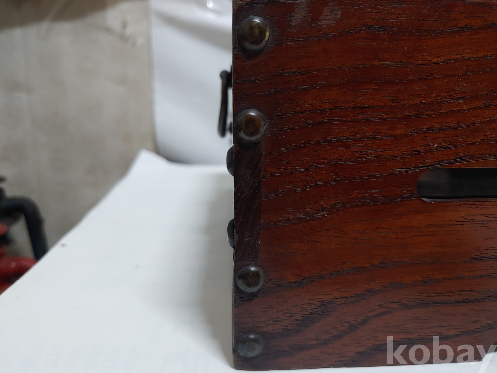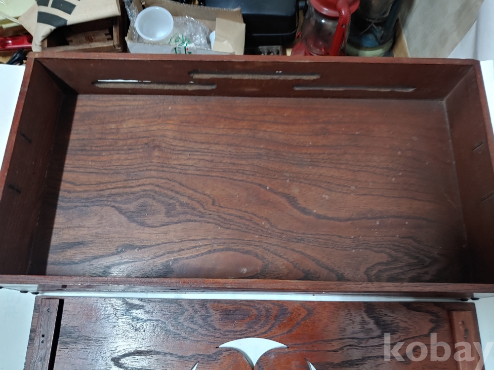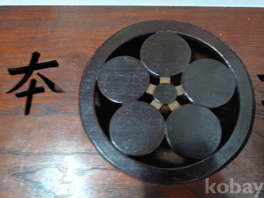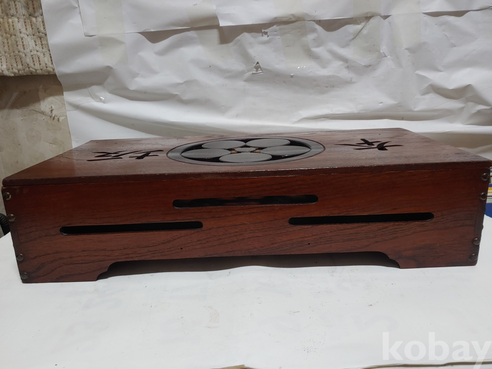 ""놋쇠 뽕장석이 있는 괴목나무 일본 다도상 (다기 보관함 다도상)""