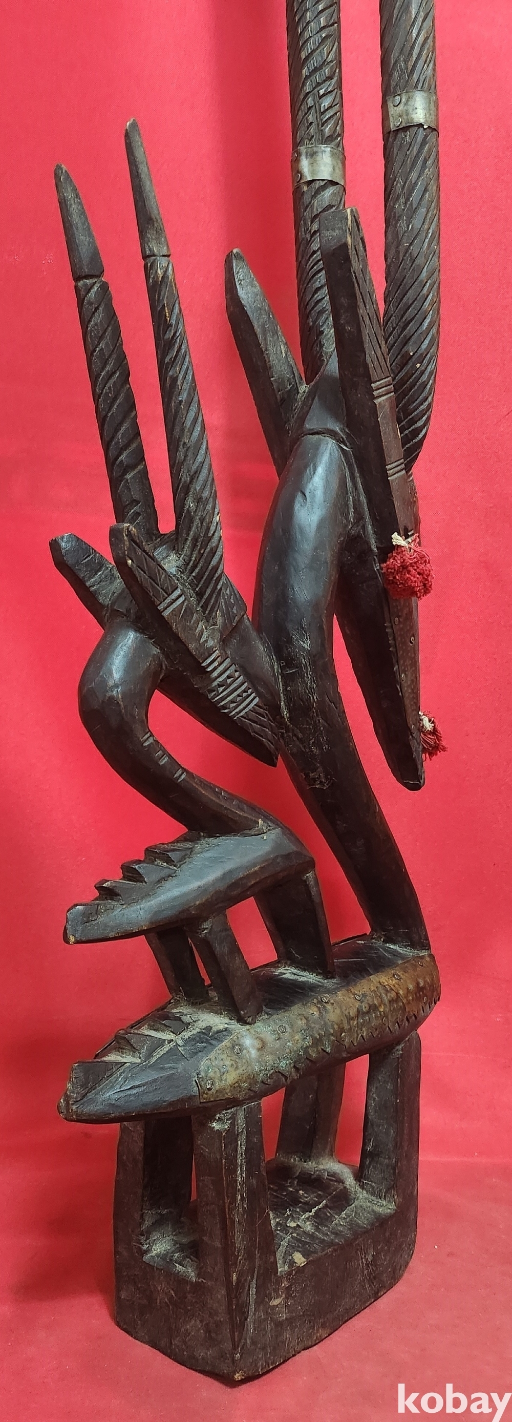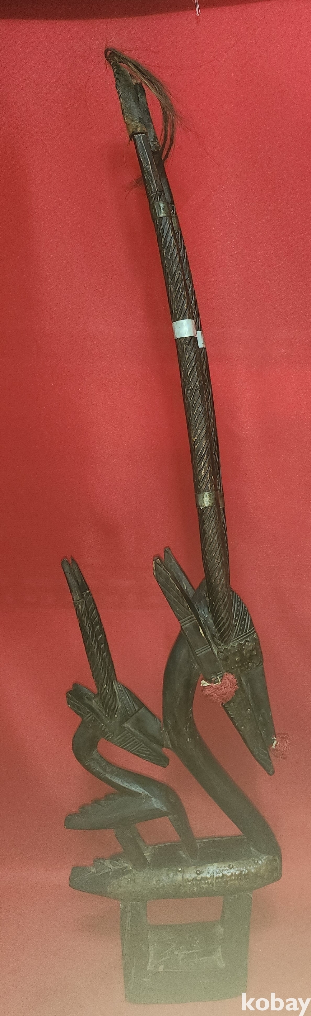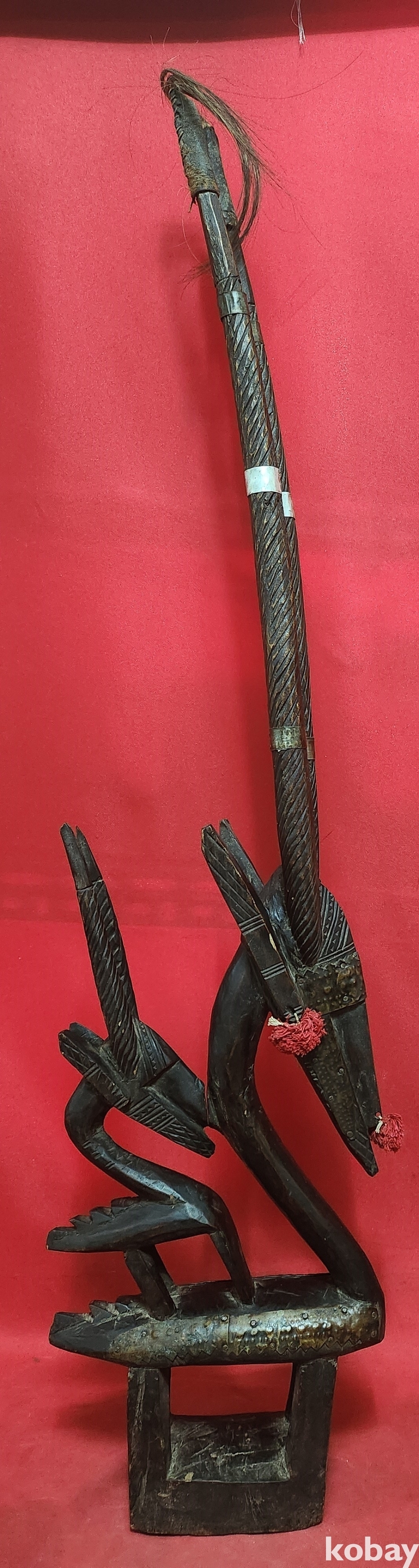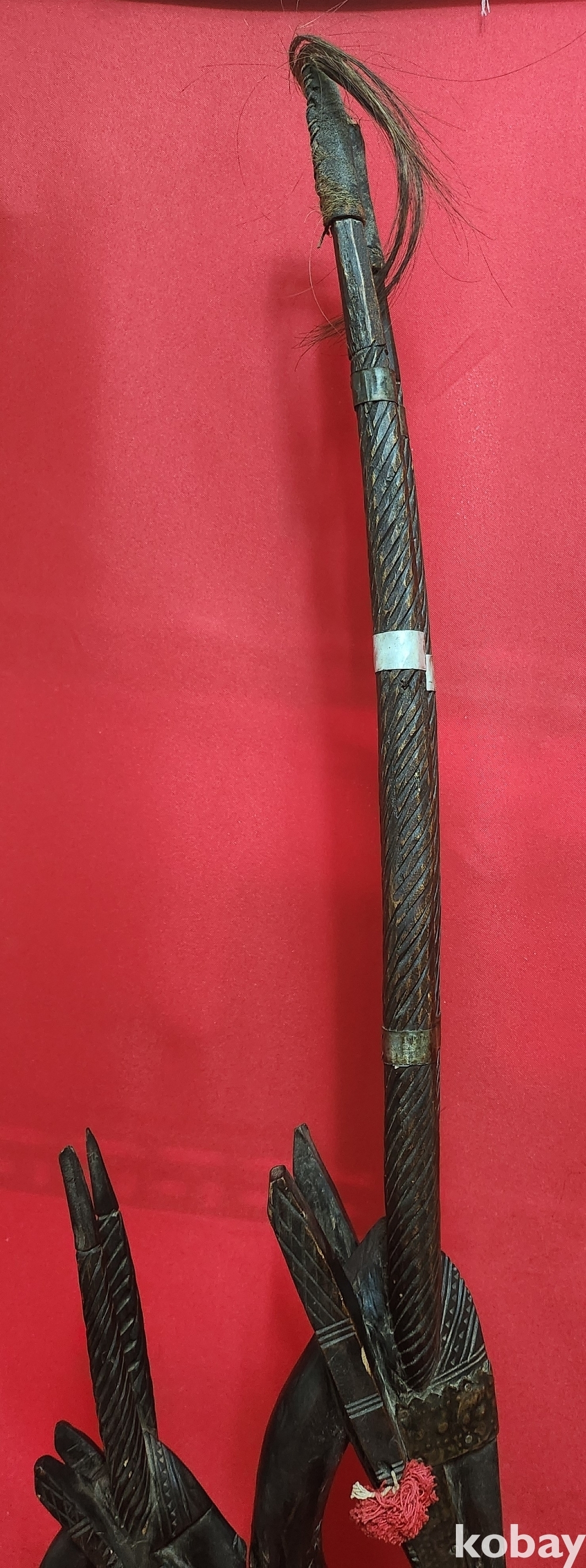 붉은색 나무에 동으로 감싼 동물형상 조각품입니다,