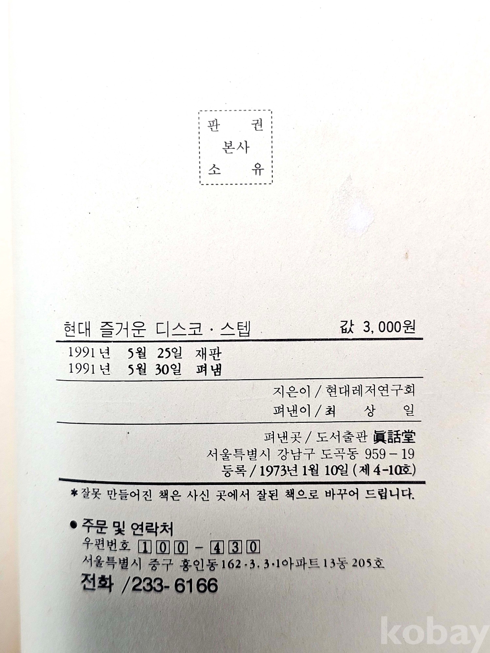 물 품 명 | 현대 즐거운 디스코 스텝 / 현대레저연구회 편 / 1991년 / 도서출판 진화당 |