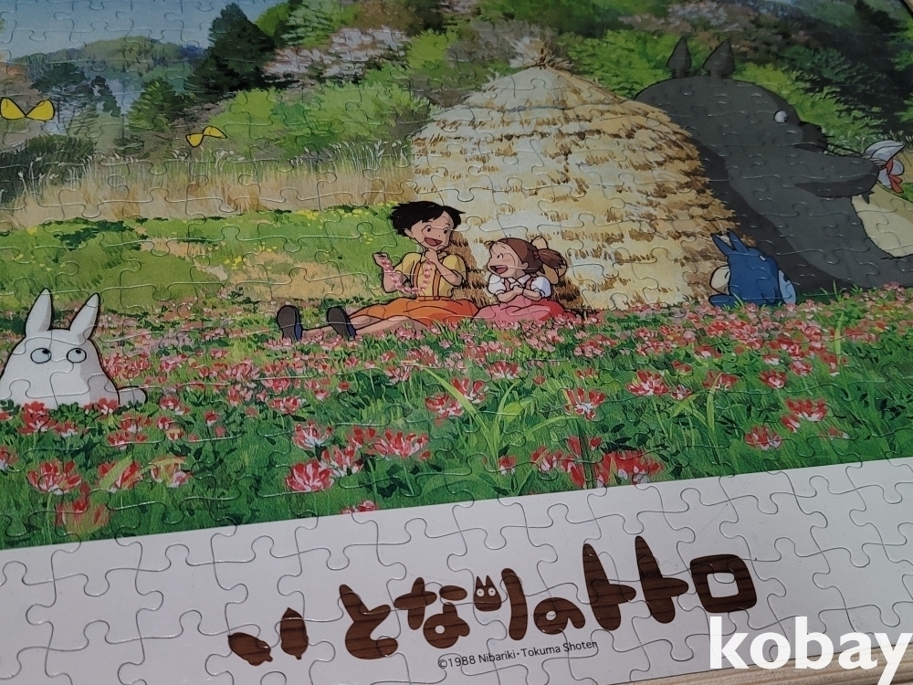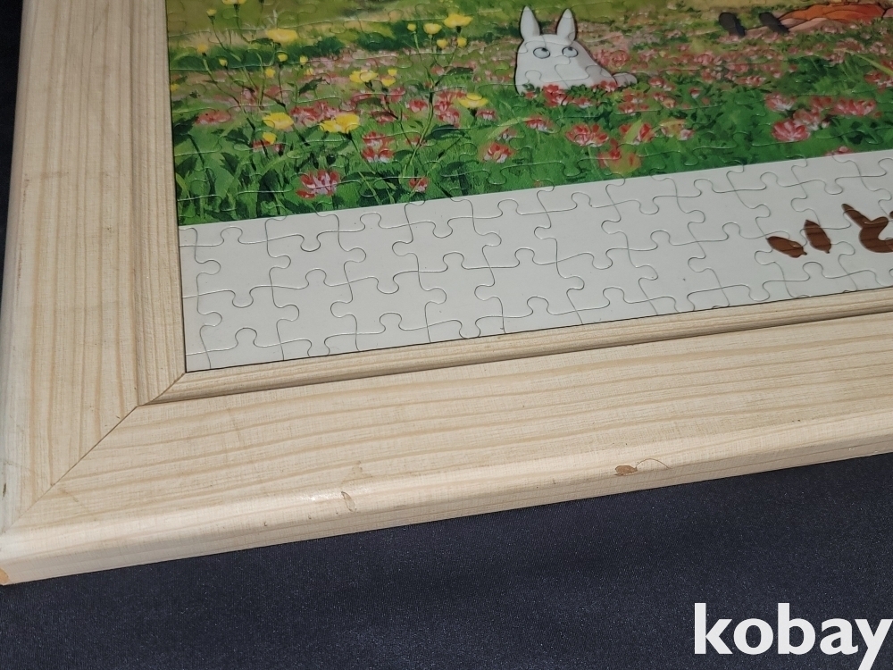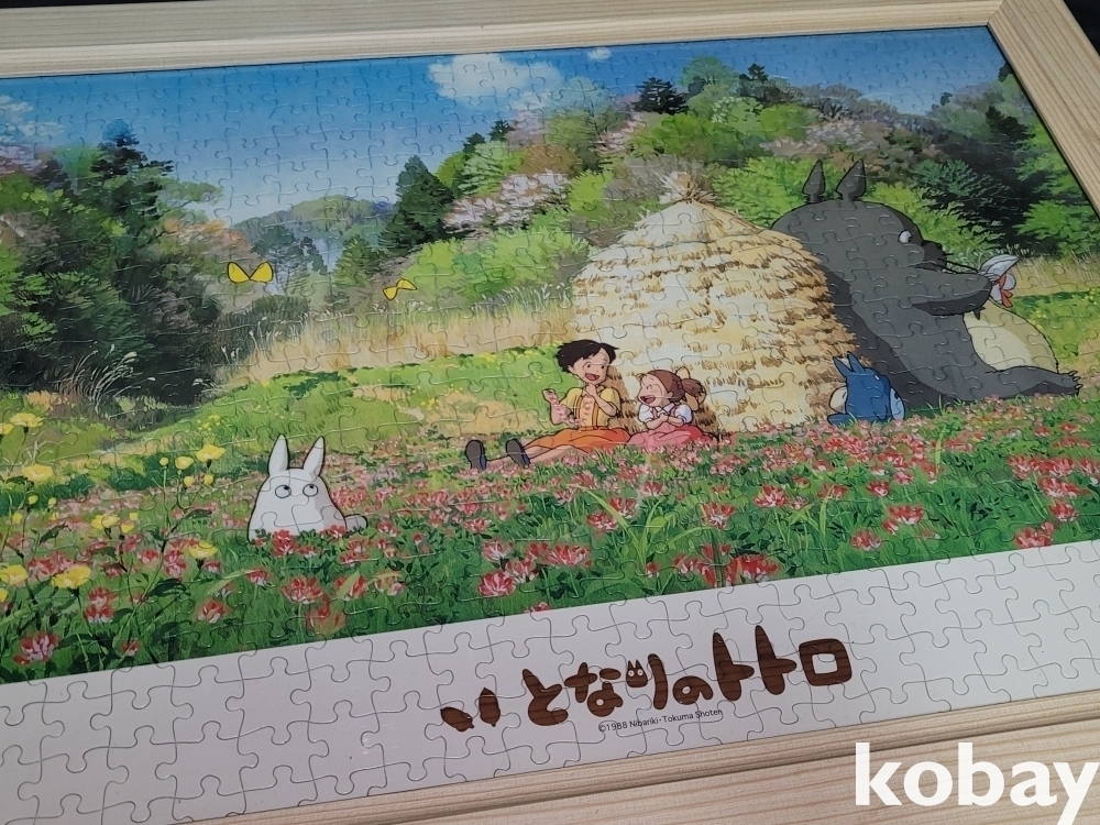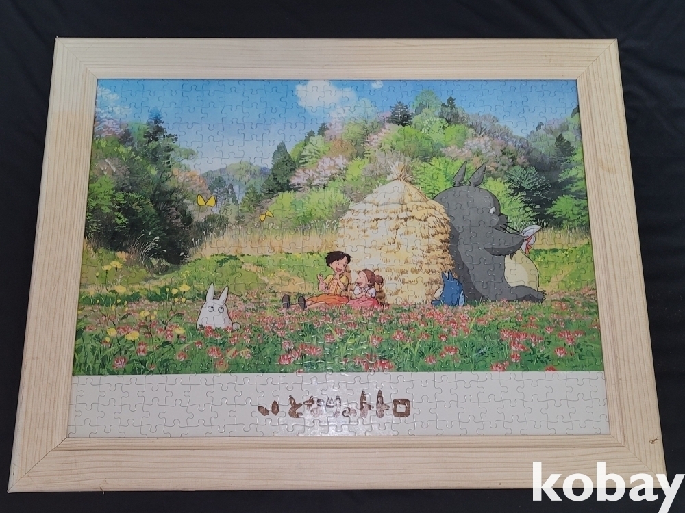 직소 퍼즐로 유명한 일본제 비벌리사의 인기작 지브리 미야자키 하야오의 이웃집 토토로 퍼즐이 전시된 액자입니다.