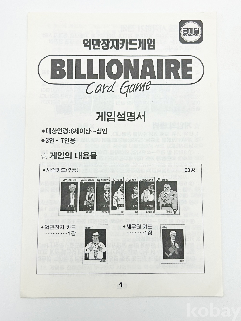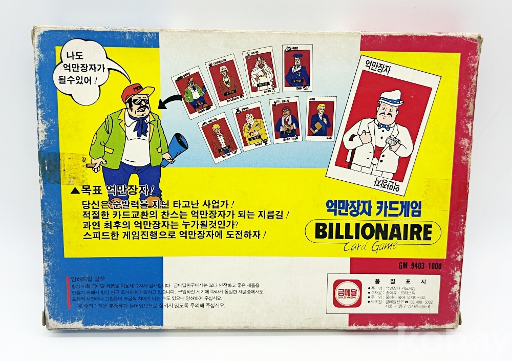상품설명 | 1994년 금메달에서 발매한 '억만장자' 보드게임 중 카드게임 버전이다. | ||