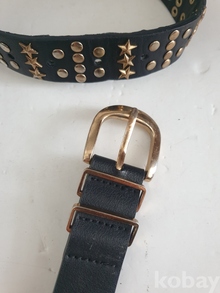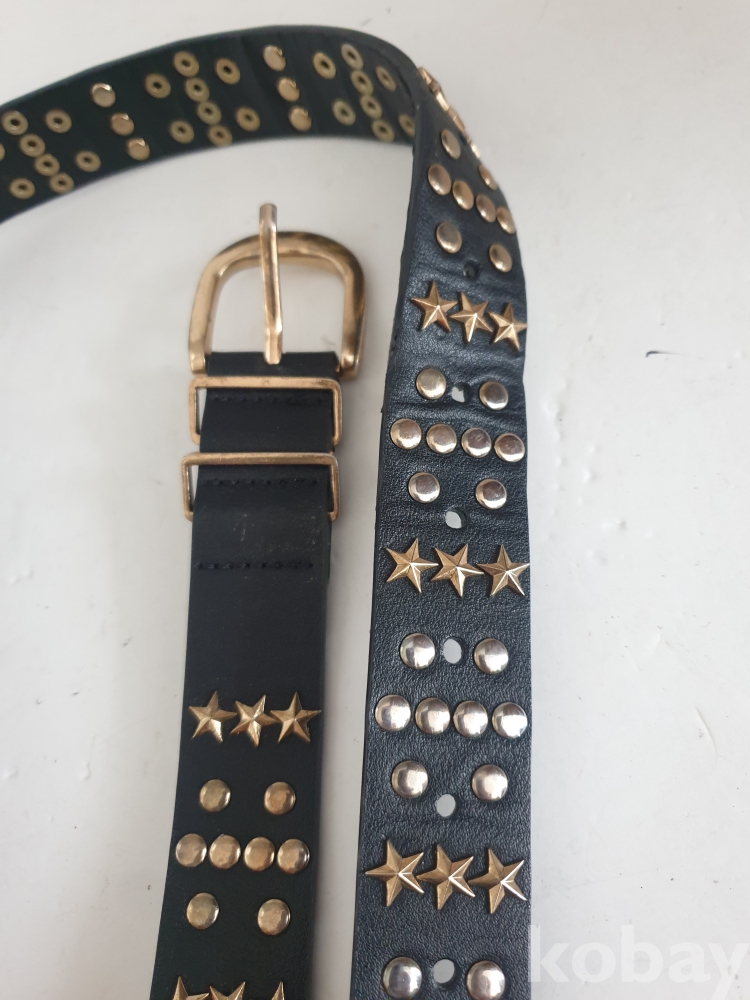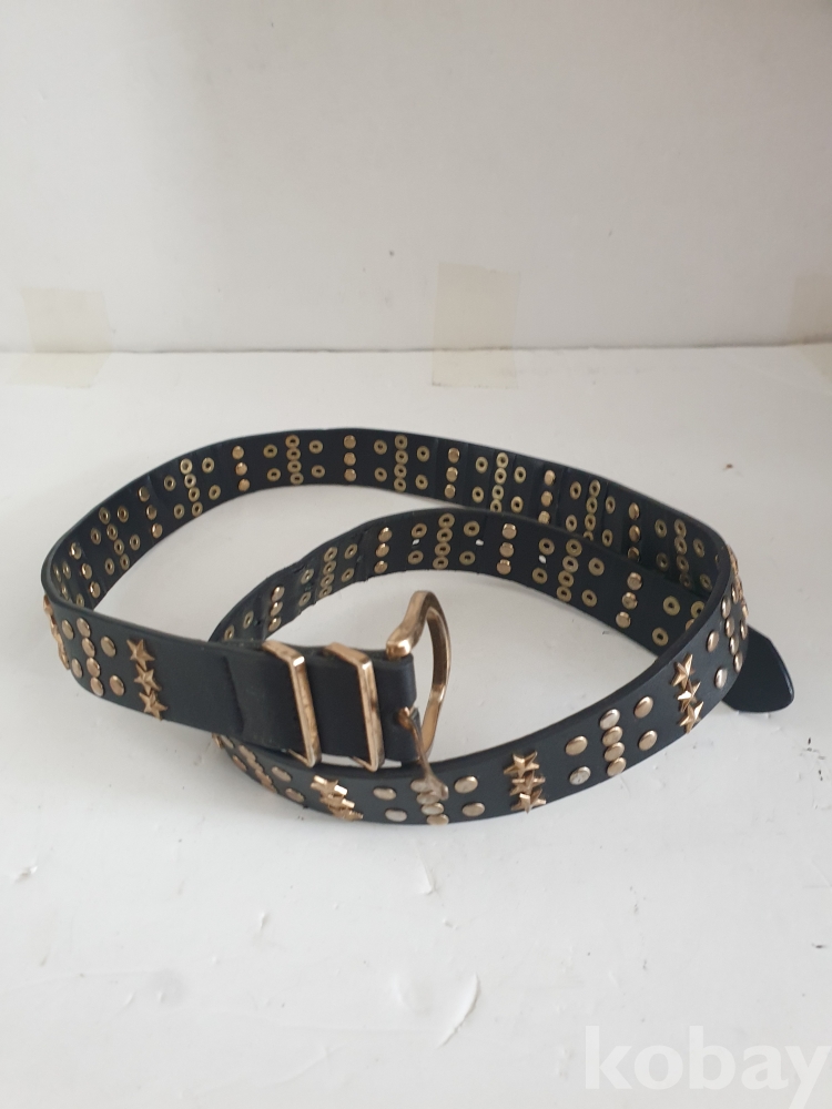 [천원경매] 11-492 스터드 장식있는 블랙 가죽벨트(사용감있음, 폭 2.3cm, 길이 버클빼고 97cm)