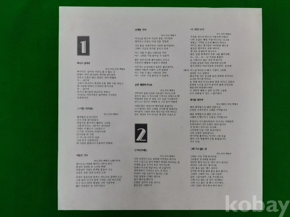 | 자켓상태 | EX : 약간의 마모, 모서리 찢김 존재 | 음반상태 | EX : 재생에 영향 없는 가벼운 기스 존재 | 발매정보 | 알수없음 | 가사지여부 | 유 |