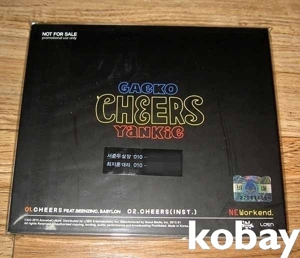 개코(다이나믹 듀오) , 얀키(YANKIE) 디지털싱글 CD - Cheers (Feat.빈지노 바빌론) ( 2015년) / 시디 음반