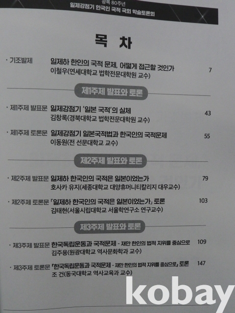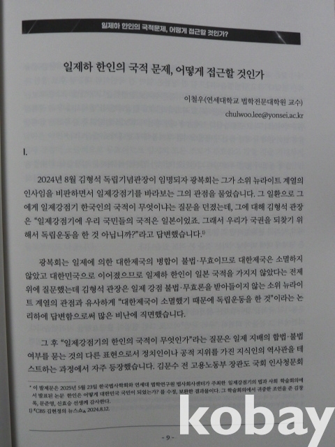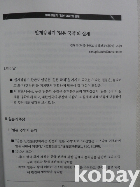 “ 일제강점기 한국인의 국적 ”에 대한 학술토론회 자료집
