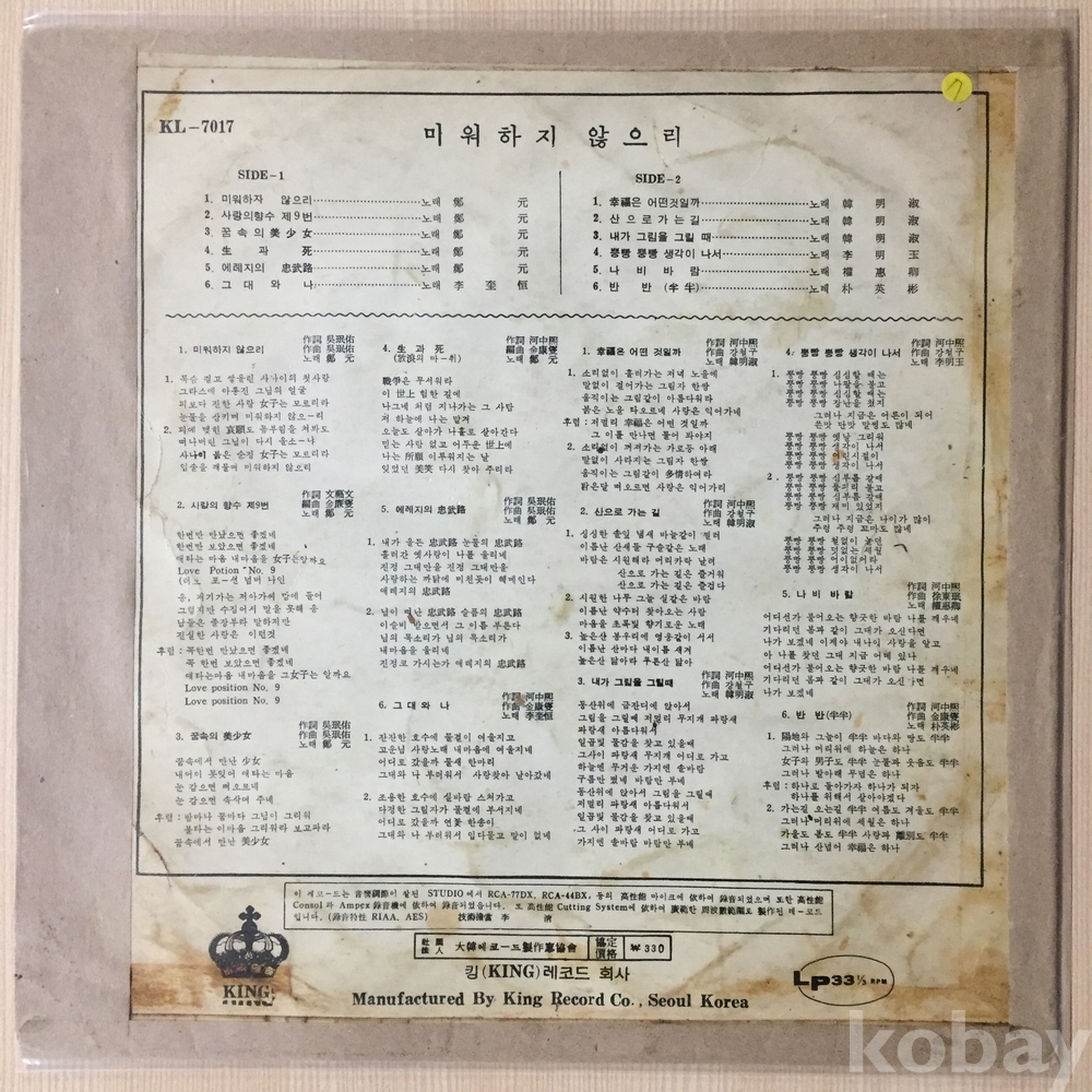 . 가요음반 대부분은 휘어짐이나 손상을 방지하기 위해 무지싱글자킷을 하나 더 사용하여 보관되었던 음반들입니다.