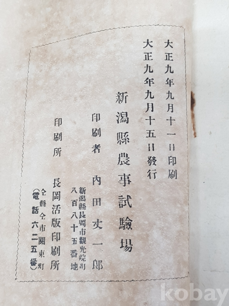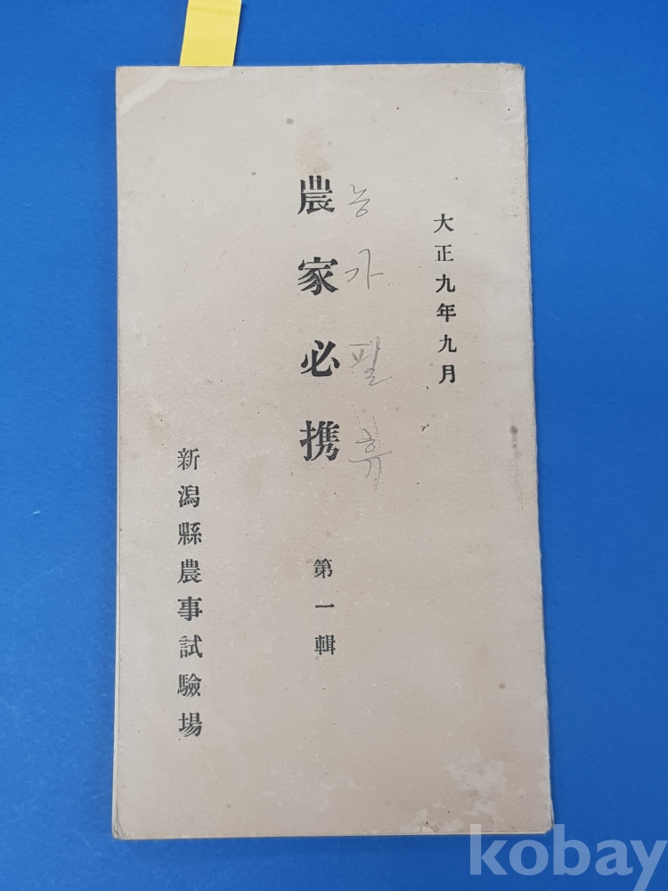 **** [농업] 農家必携 제1집(대정9년9월.新潟縣농사시험장/朝鮮내용 포함/60쪽