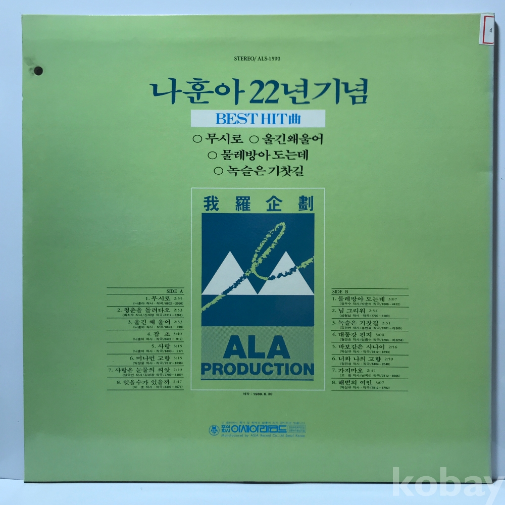LP 83,770-22 나훈아 22년 기념 - 무시로/ 울긴왜울어 . 자켓 EX+ 알판 NM 89 년제작 국내반