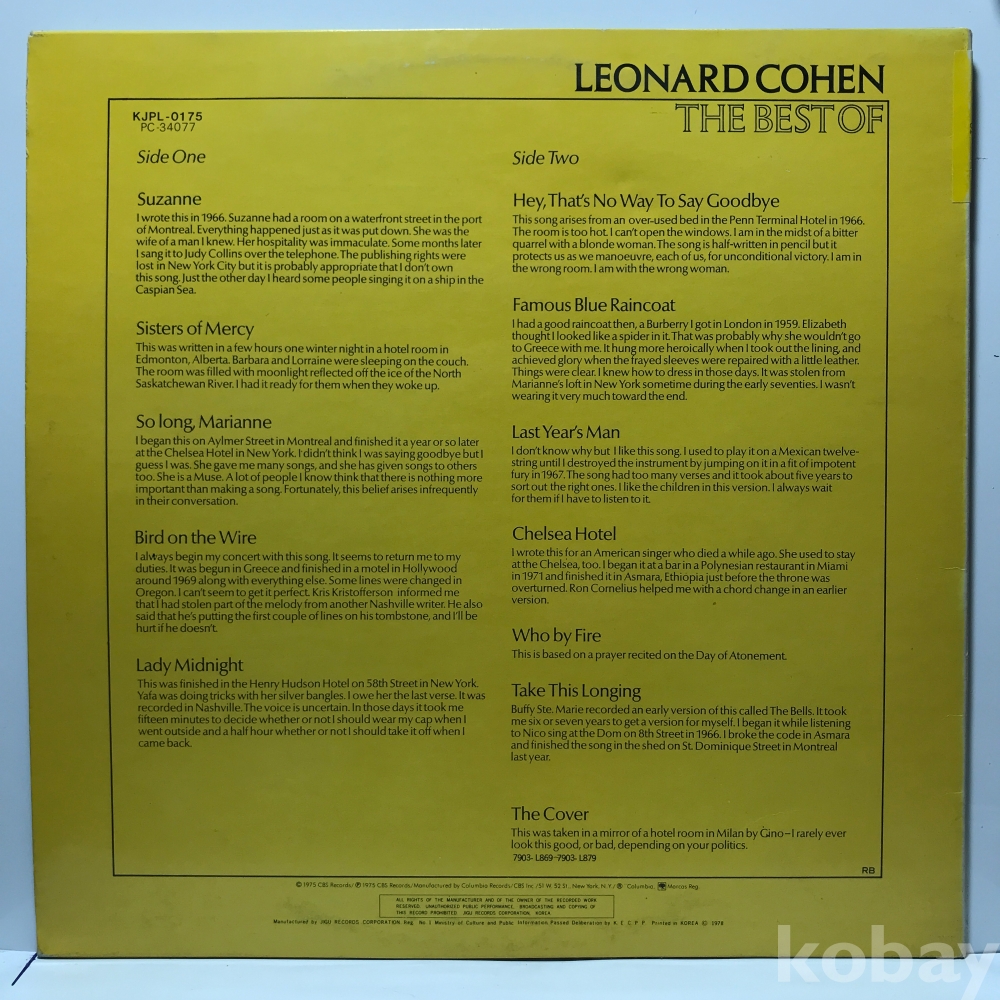 LP 84,000-100 Leonard Cohen/The Best Of . 자켓 EX 알판 EX 79 년제작 국내반