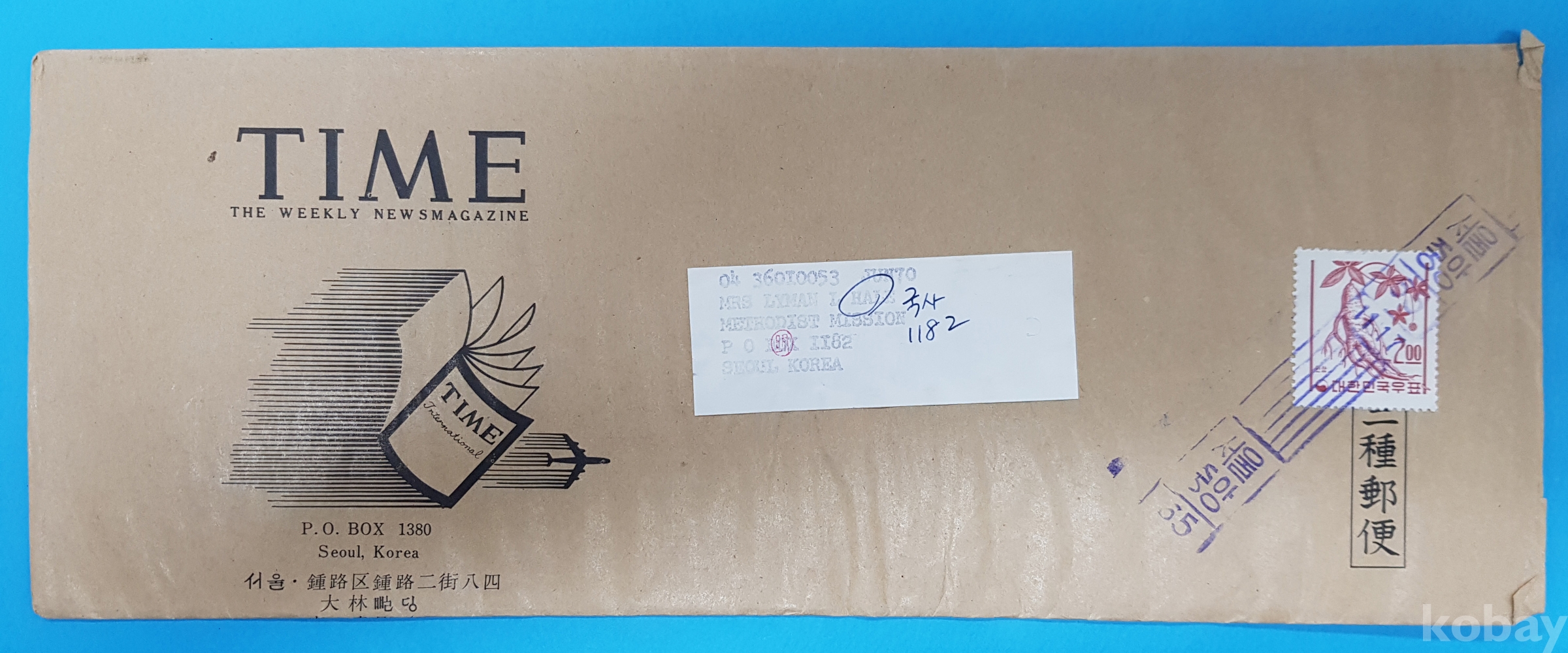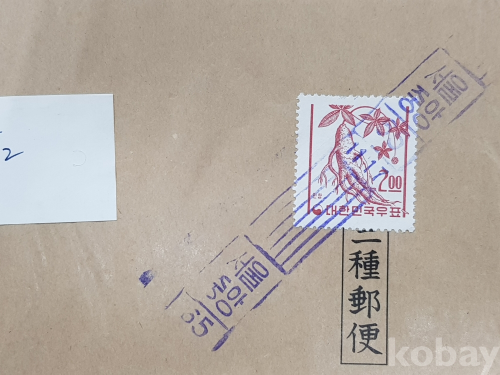제1차국백 2원 인삼 단첩 인쇄물띠지 실체*서울중앙,65.11.17 로라인