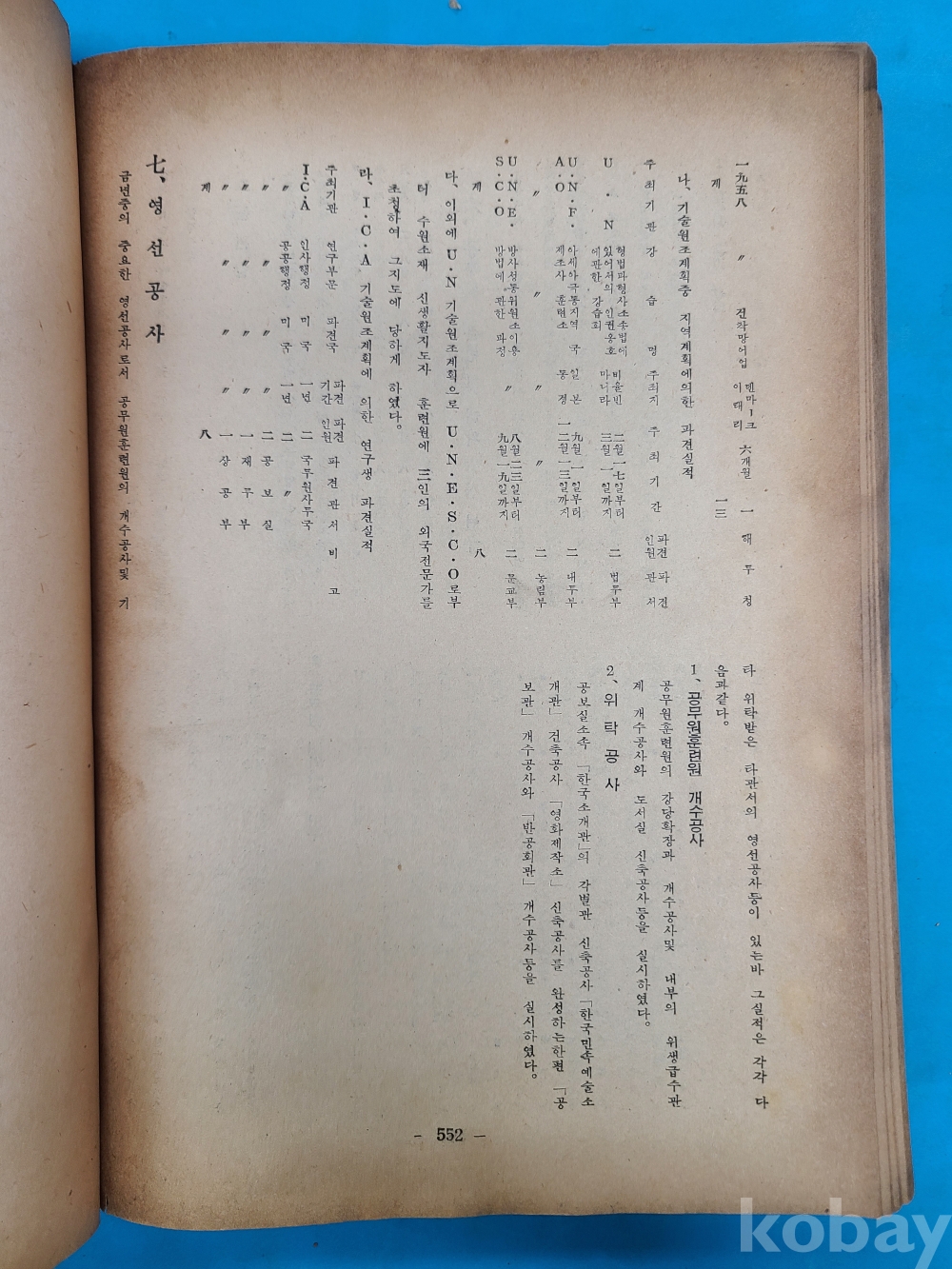 4291년도 정부시정업적 (관보부록. 공보실). 552쪽