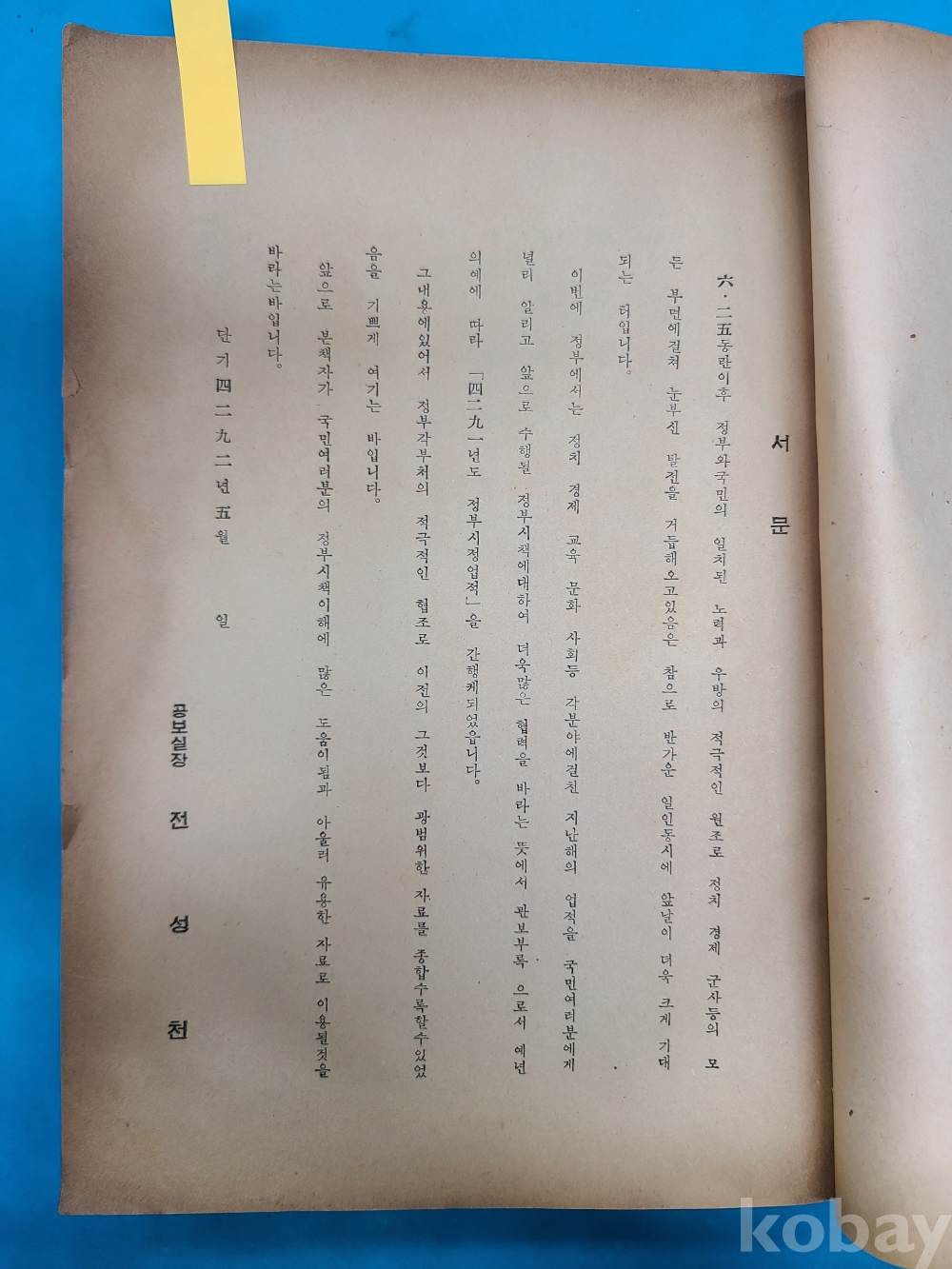 1959년5월 공보실장 전성천 서문.