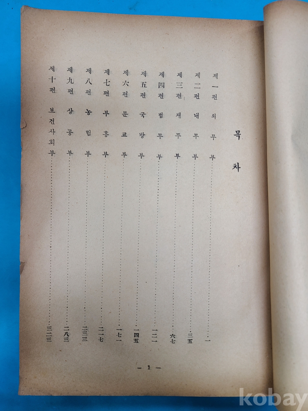 제1편 외무부. 제2편 내무부..... 제17편 해무청. 제18편 국무원사무국으로 구성됨