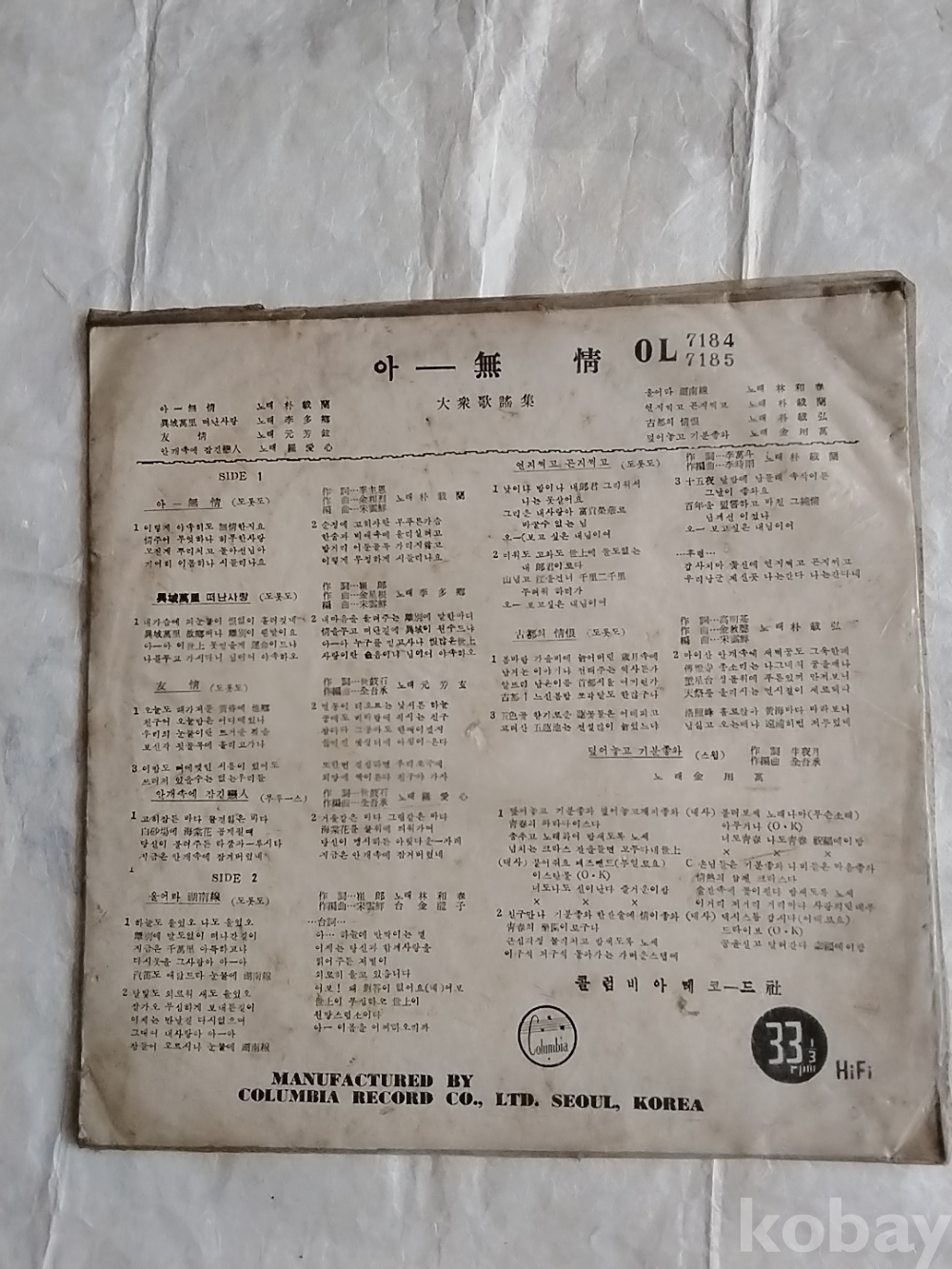 자겥 후면에는 Columbia Record 로 표기되었으니