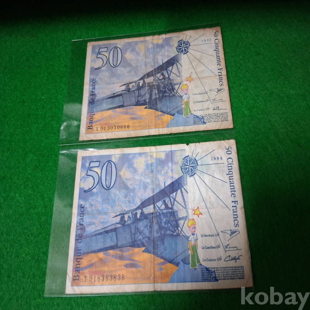 프랑스 1992,94년 50프랑2매 사용제