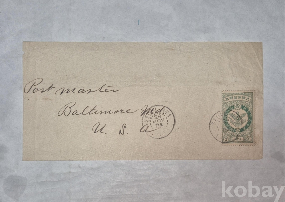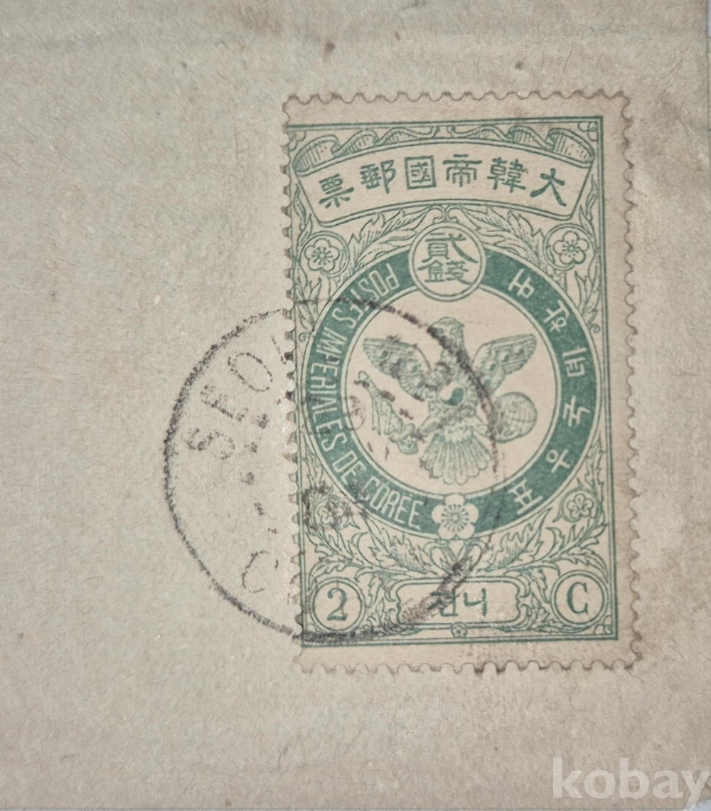 1904년에 대한제국 독수리 우표를 첩부해 사용한 실체입니다.