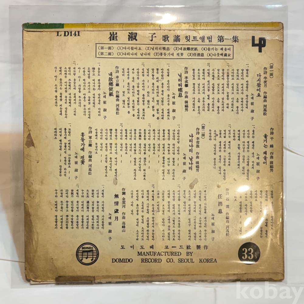 EX : 약간의 마모, 모서리 찢김 존재 음반상태