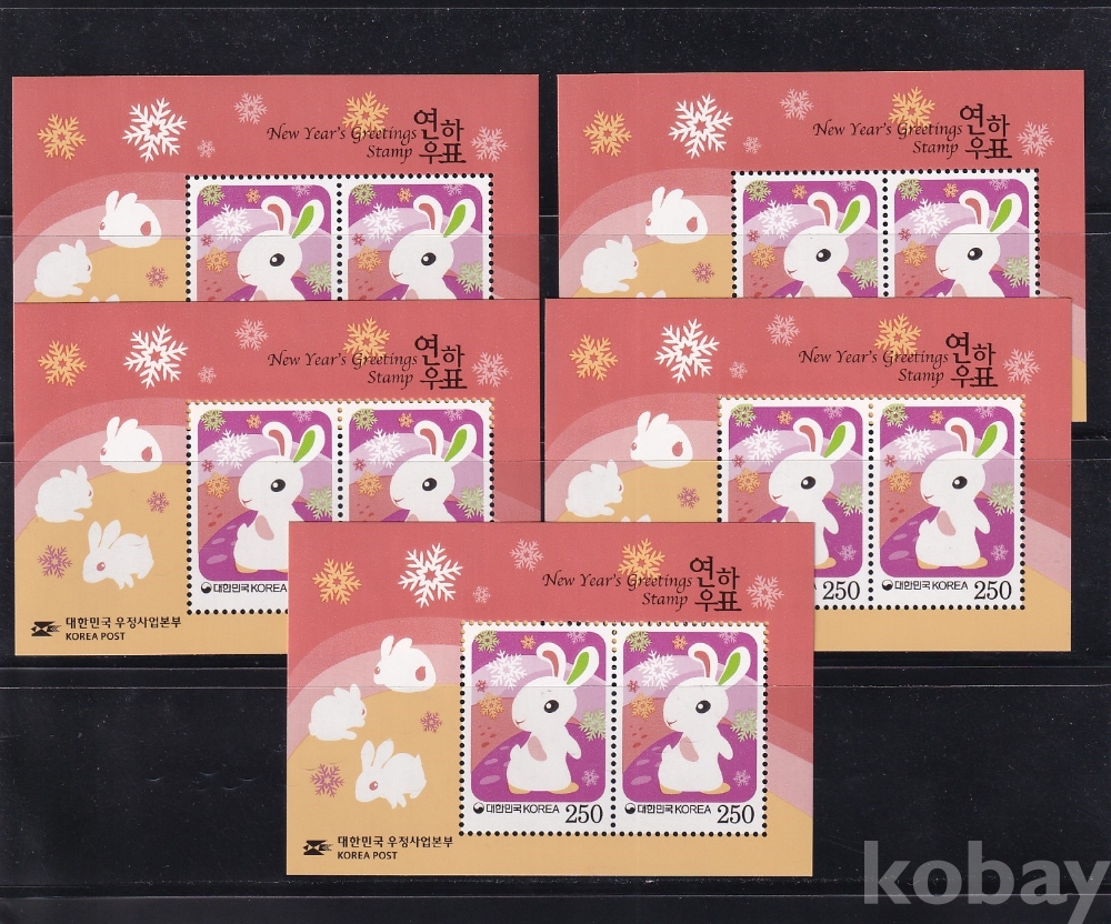 - 미사용 2011년용 연하우표 시트 5장 모음 - 2010년 발행