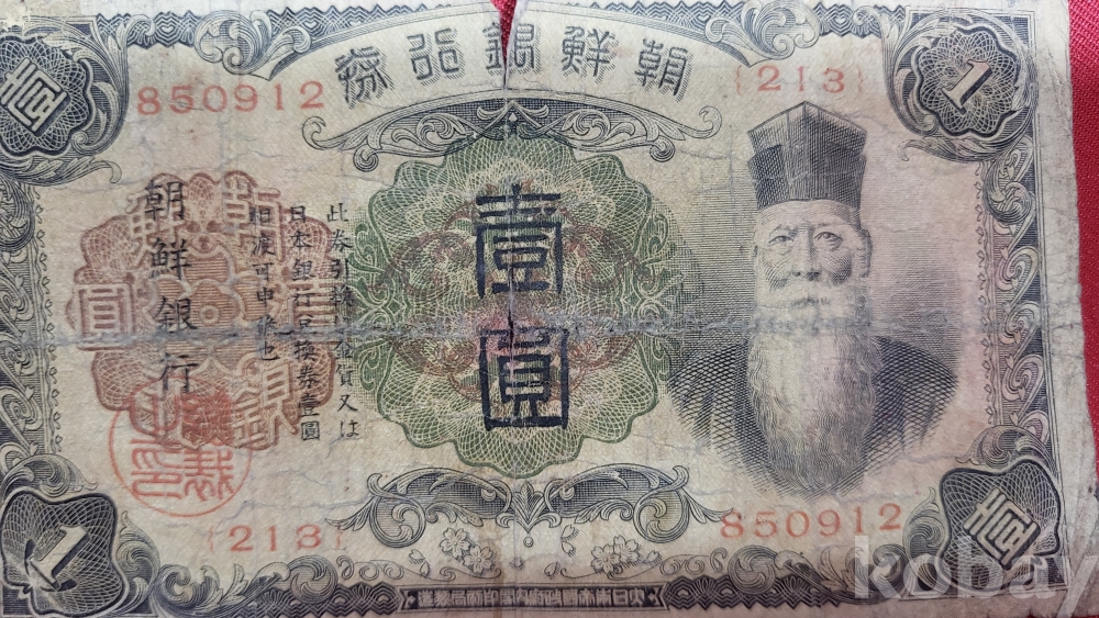 K ㅡ5책 7 호 내4번 ////// 일제강점기 때 사용되었던 조선은행의 일원 지폐입니다,