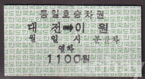 - 미사용 통일호 승차권 " 대전 ▶ 이원 " 1100원