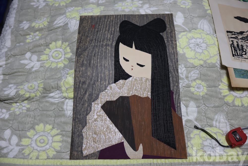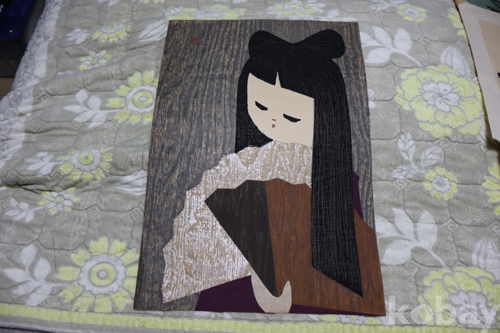 초 대형 판화 일본 현대 판화의 대가 가와노의 원본 초대형 목판화 임니다 은 마이카 처리 된 귀한 디자인을 가진 명화 임니다 극히 귀한 대형 목판화