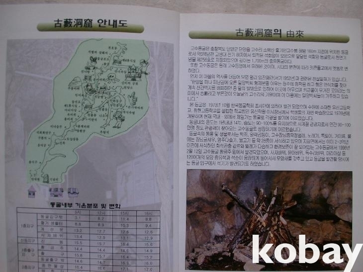 표지 좌측상단에 "천연기념물 제256호"란 말이 있다. 뒤표지에 관광안내도와 교통편 소개가 있고 <목차>가 있다. 유래나 형성과정 설명이 있다. 단양군 고수리의 소백산 자락에 위치한 1.7km의 석회암 동굴로서 3단계의 형성과정에 대한 설명과 도판사진들이 있다. 비교를 위한 타 동굴 소개나 단양8경 소개가 있다.