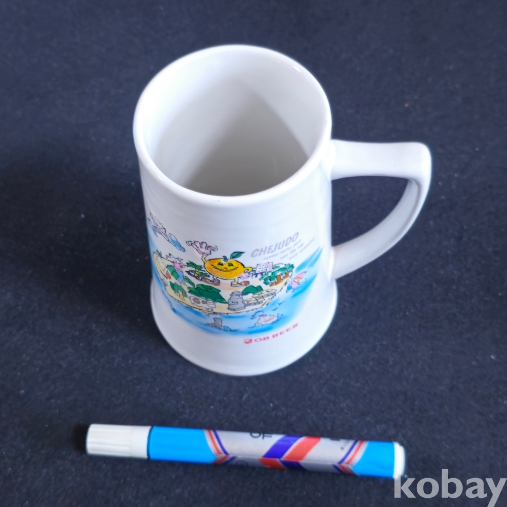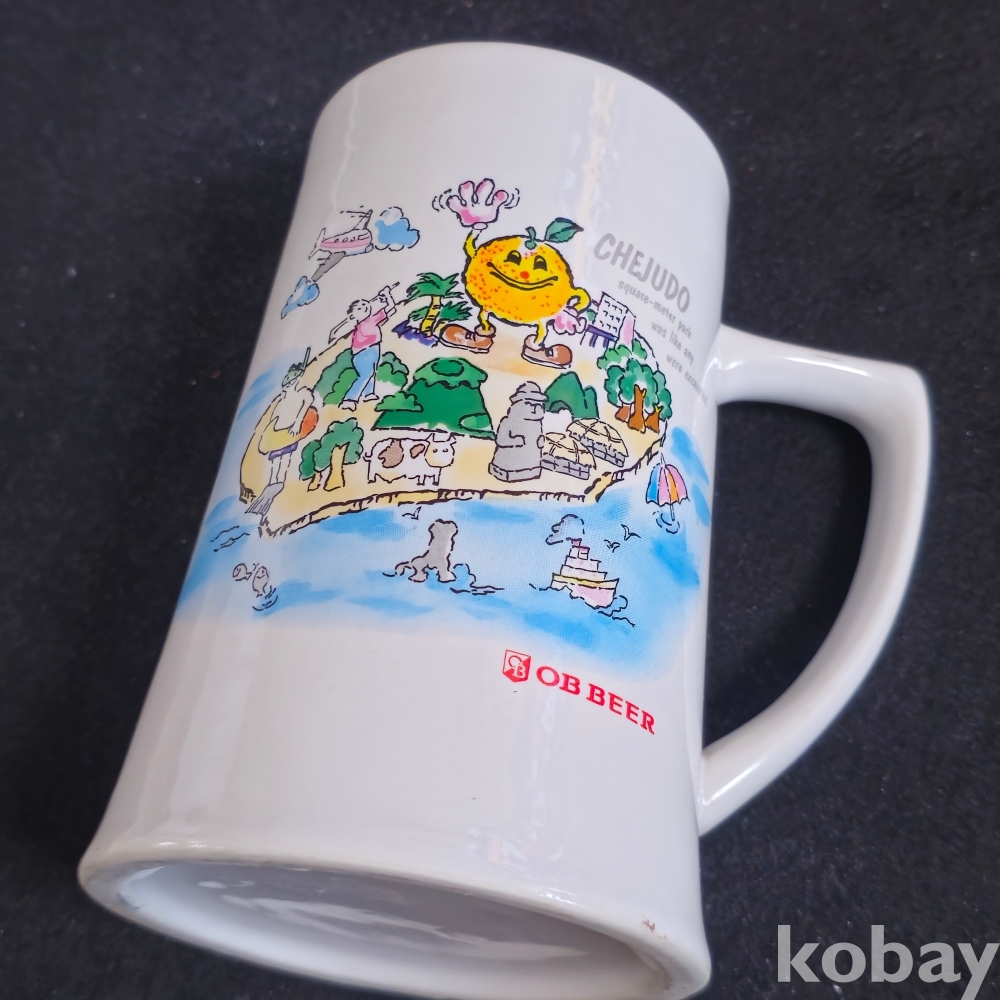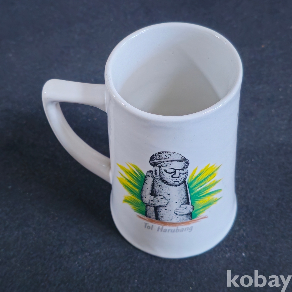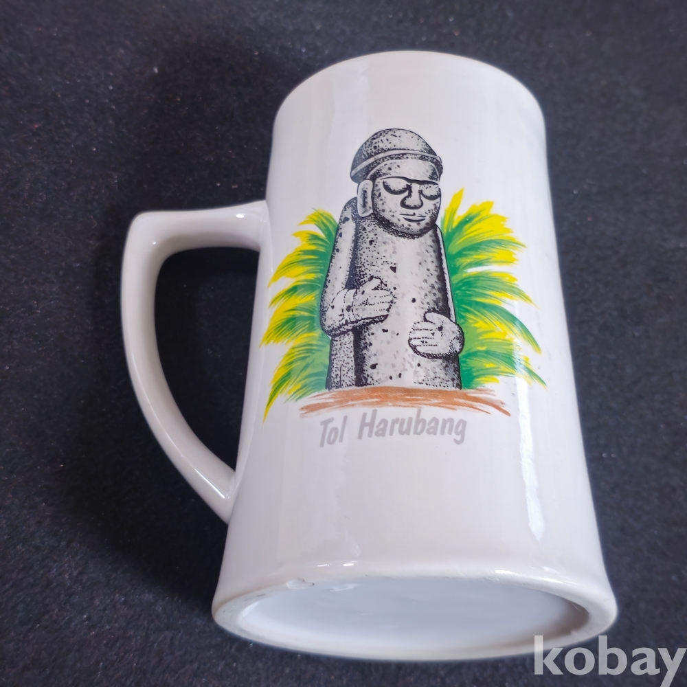 (((근현대사자료/술자료))) 오래전 오비맥주 (OB BEER) 에서만든 제주도 하루방모습과 제주전경이 담긴 도자기생맥주잔