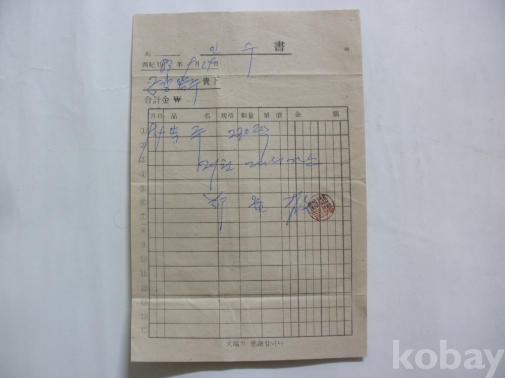 약주 230짝 - 인수서 (1983년, 금강약주)