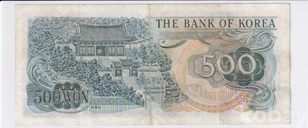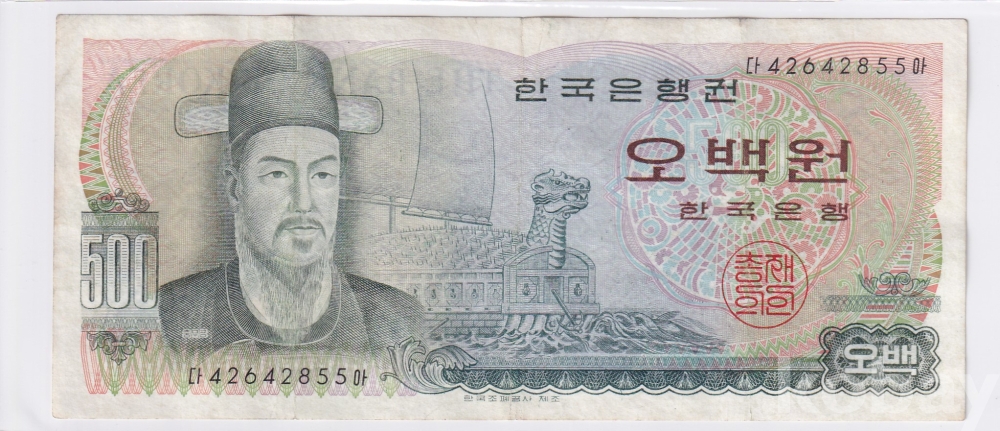 - 한국은행 1973년 이순신 오백원 4포인트 사용제 지폐