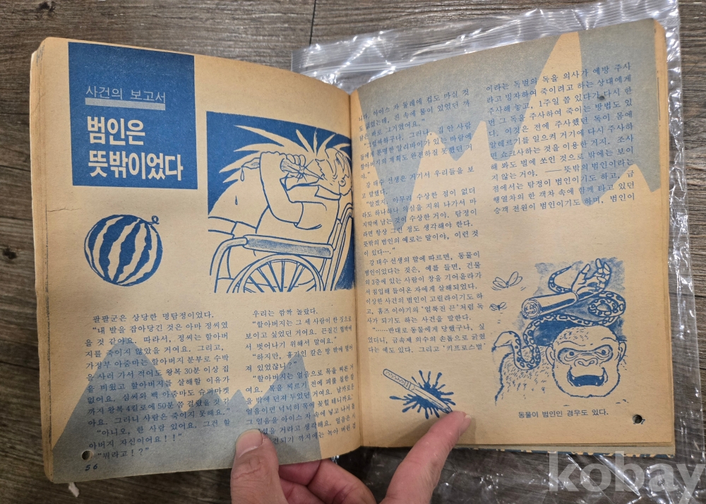 월간 소년중앙의 부록 명탐정백과입니다 오른쪽아래 펀칭으로 구멍이 관통되어있는것 빼고 상태 괜찮습니다